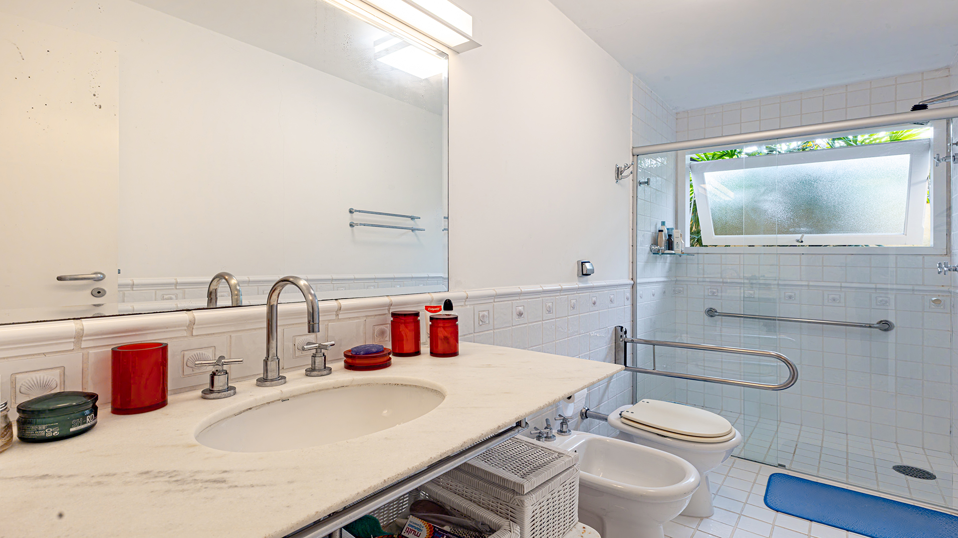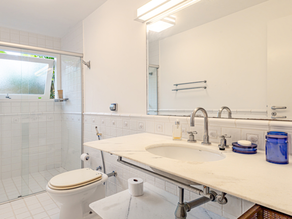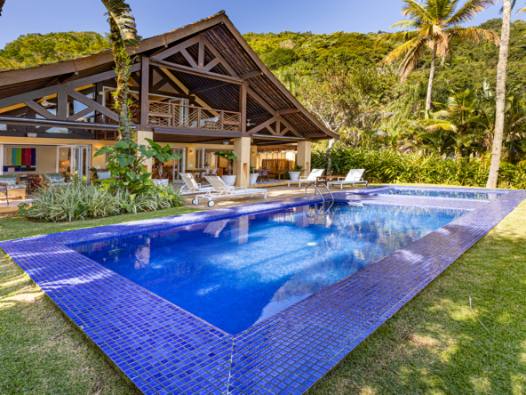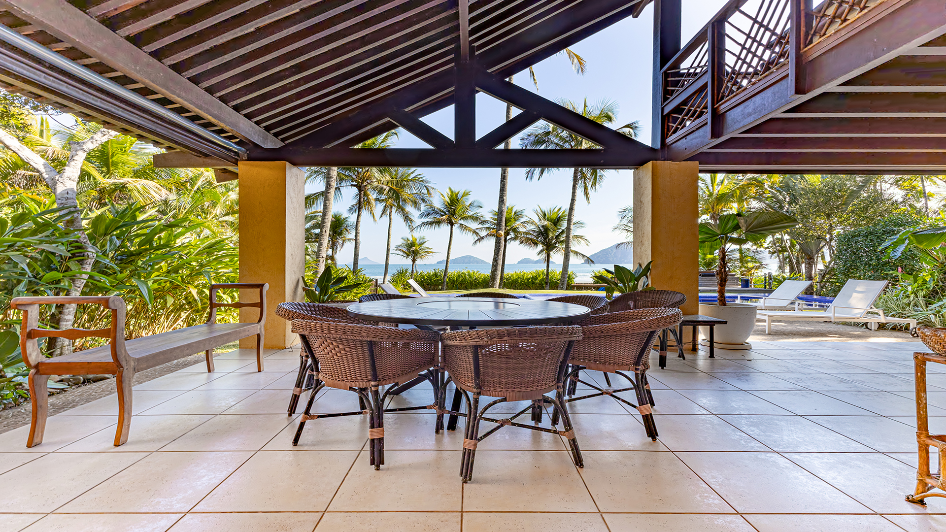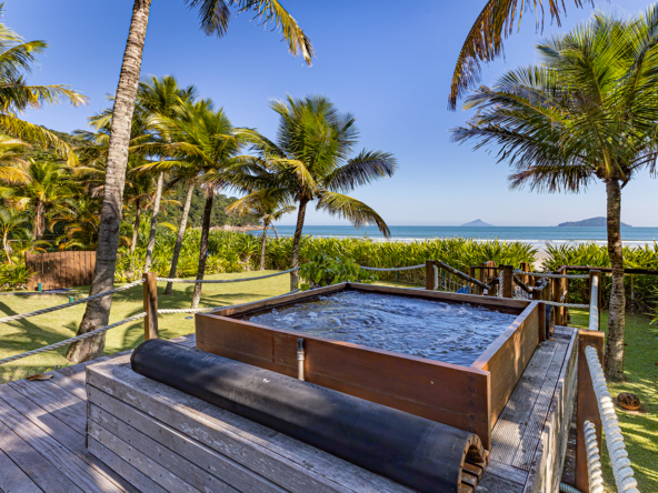 Na área externa, o destaque fica para o belíssimo jardim frente mar, que proporciona uma vista deslumbrante e permanente do oceano. O espaço de lazer conta ainda com piscina e jacuzzi, ideais para momentos de relaxamento e contemplação em um cenário paradisíaco.