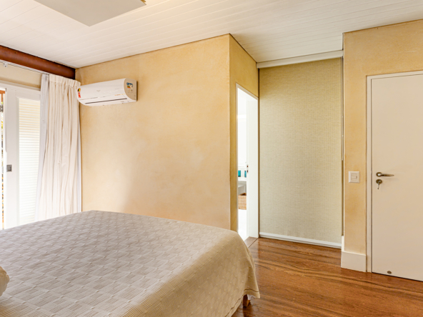A casa dispõe de 7 dormitórios, todos suítes, proporcionando privacidade e comodidade para toda a família e convidados. Os ambientes são amplos, bem iluminados e totalmente mobiliados, prontos para uso imediato. O projeto privilegia a integração entre os ambientes internos e externos, criando uma atmosfera acolhedora e exclusiva.