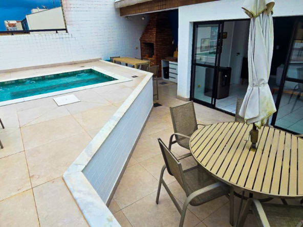 Linda cobertura vista mar apenas 100 metros da badalada Praia da Tabatinga. Área gourmet integrada com piscina e vista para a Mata Atlântica. Possui 3 dormitórios sendo 2 suítes, sala de TV no andar térreo integrada com a varanda. Sala de TV no segundo andar integrada com área gourmet. Cozinha planejada, área de serviço, 2 vagas de garagem cobertas sendo 1 demarcada. O condomínio ainda contempla área de lazer com salão de jogos e de festa, piscina adulto e infantil, playground, quadra poliesportiva, churrasqueiras e forno de pizza. No entorno o bairro oferece supermercado, restaurantes, empório, sorveteria e quiosques ao longo da faixa de praia.