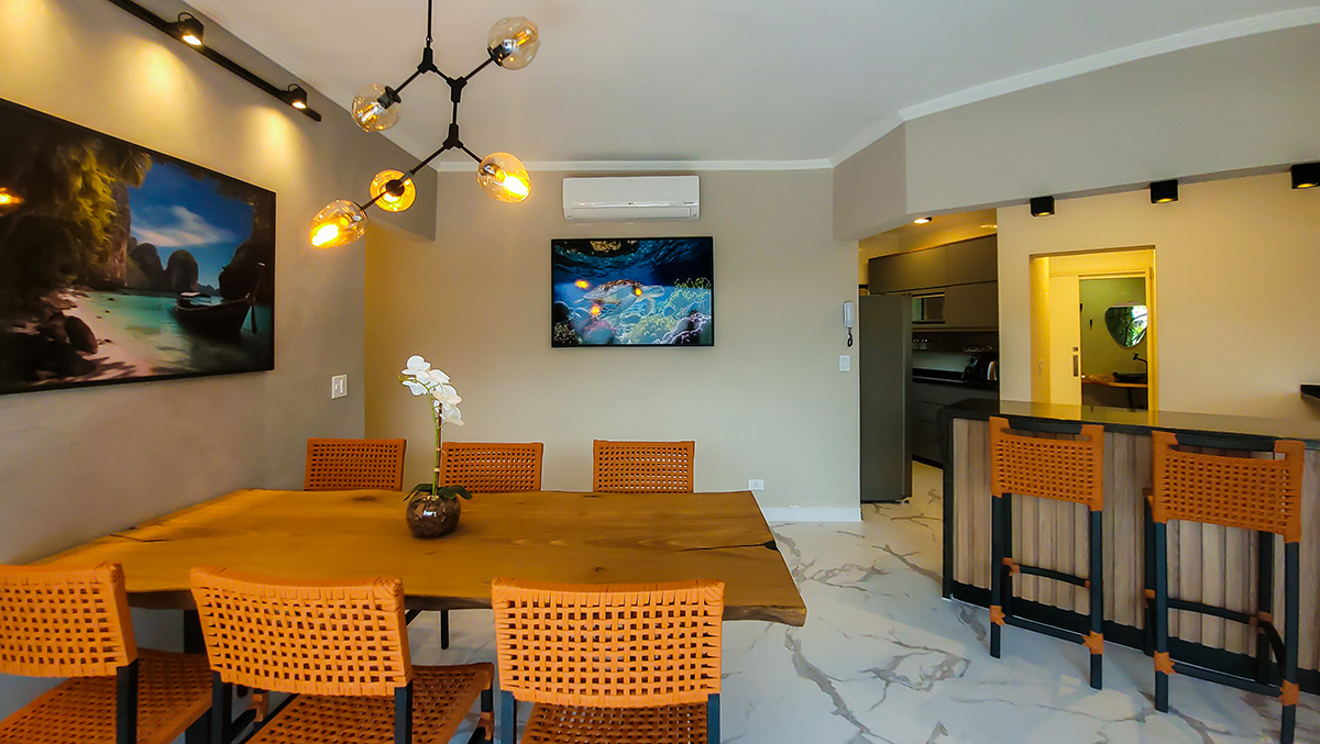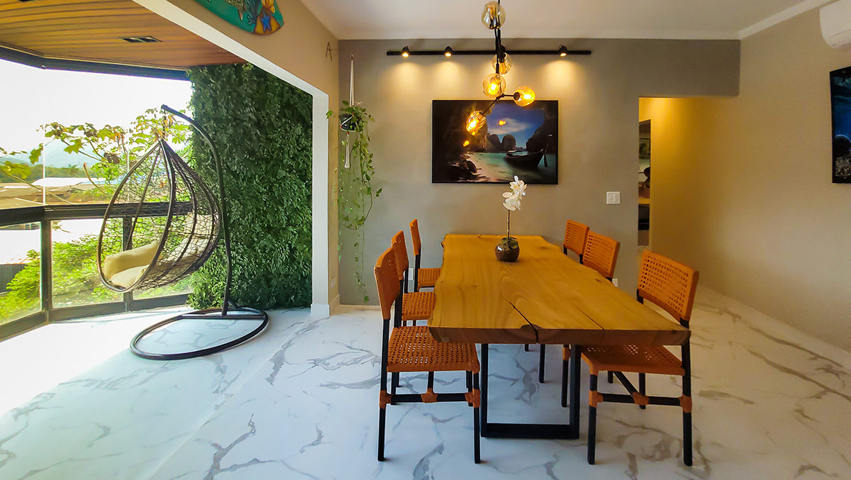 Desfrute de dias inesquecíveis neste amplo apartamento de 172 m², totalmente reformado e decorado com muito bom gosto, no exclusivo Condomínio Tropical, a apenas 300 metros da Praia da Tabatinga — uma das mais belas e tranquilas de Caraguatatuba.