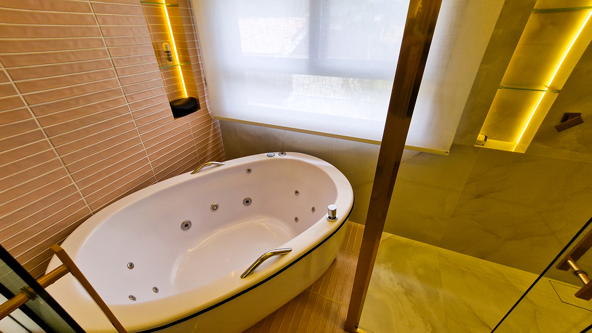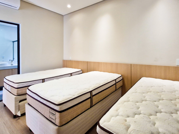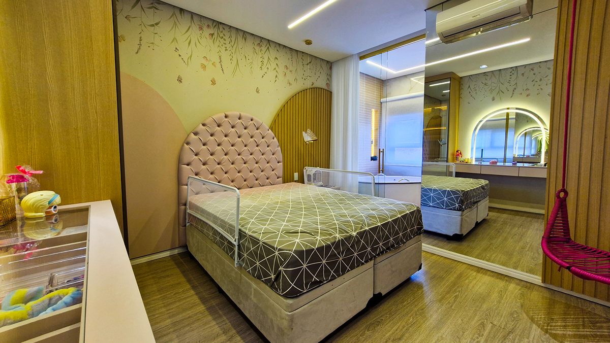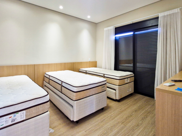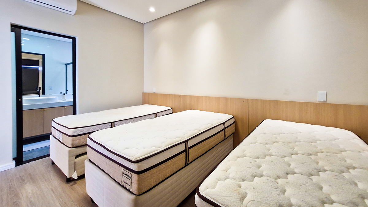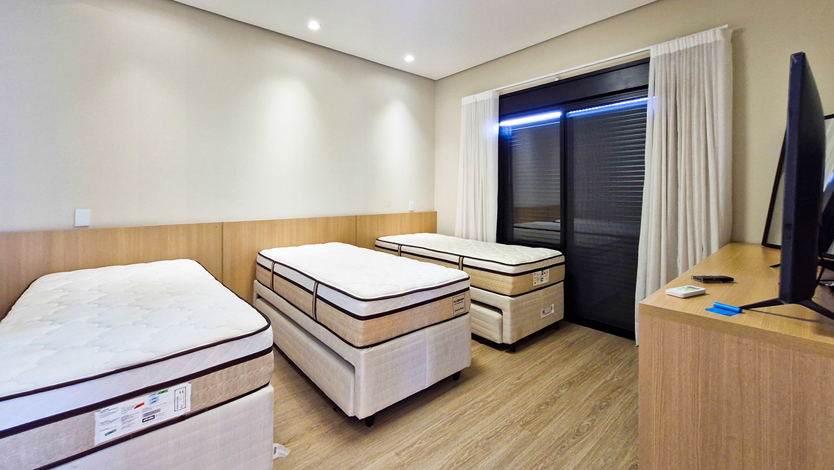 Suítes amplas, bem iluminadas e climatizadas