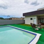 A área gourmet com churrasqueira complementa o espaço, perfeita para receber amigos e familiares com conforto e funcionalidade.