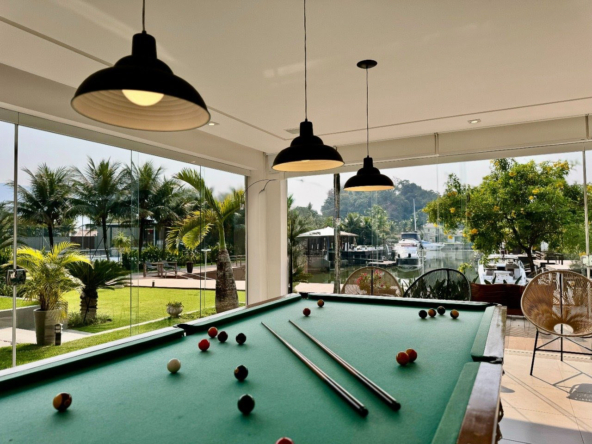 O Condomínio oferece vigilância 24h, câmeras de monitoramento, ciclovia, praia privativa, comércio, salão de beleza, restaurantes e marina seca e molhada onde as grandes embarcações de Angra ficam abrigadas.