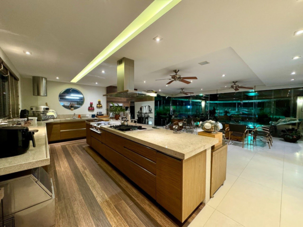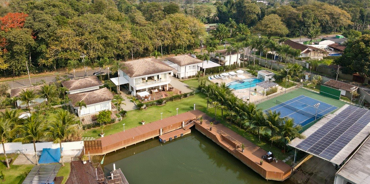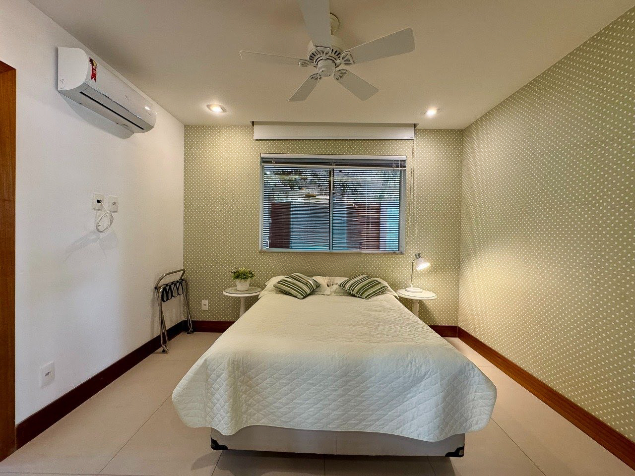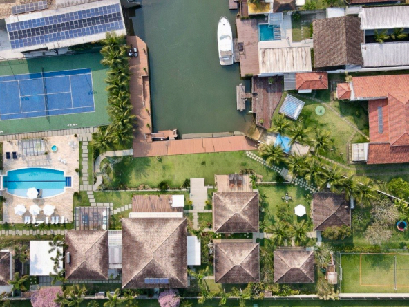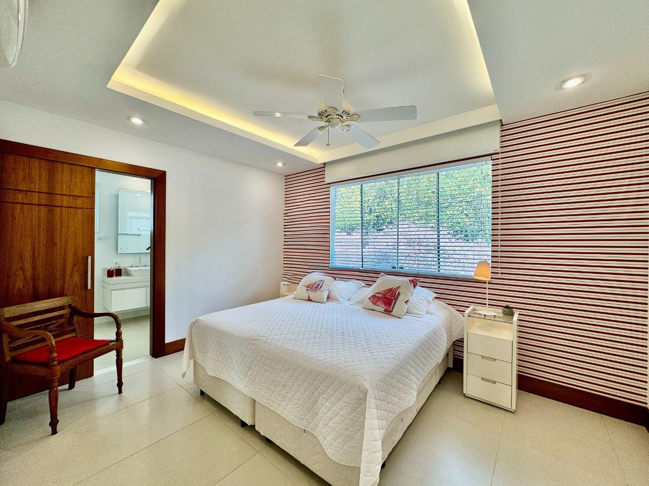São 8 suítes (todas climatizadas com split), sendo a suíte master com 46m², closet e varanda com vista para o canal.