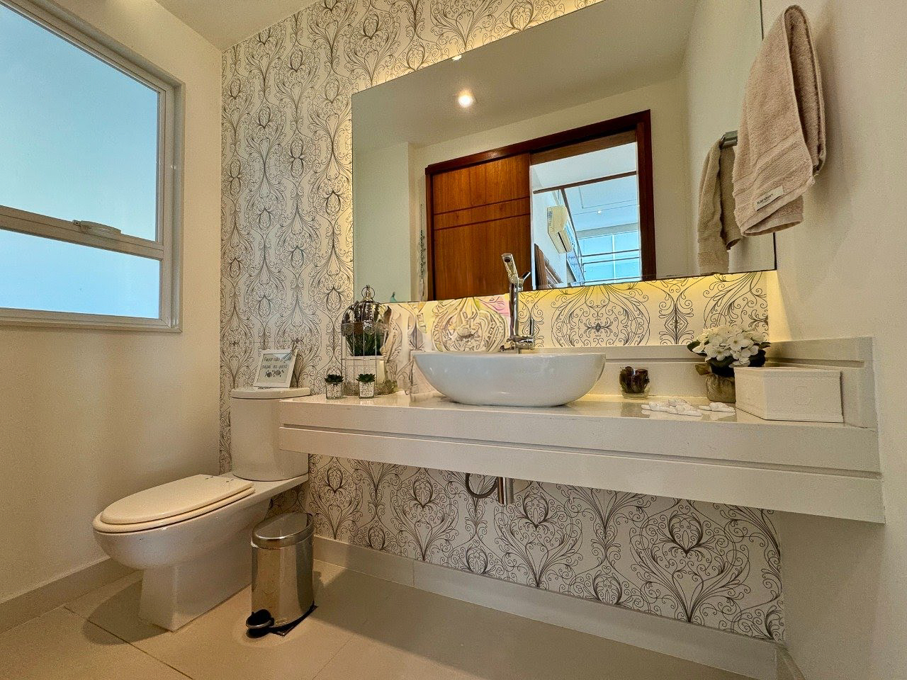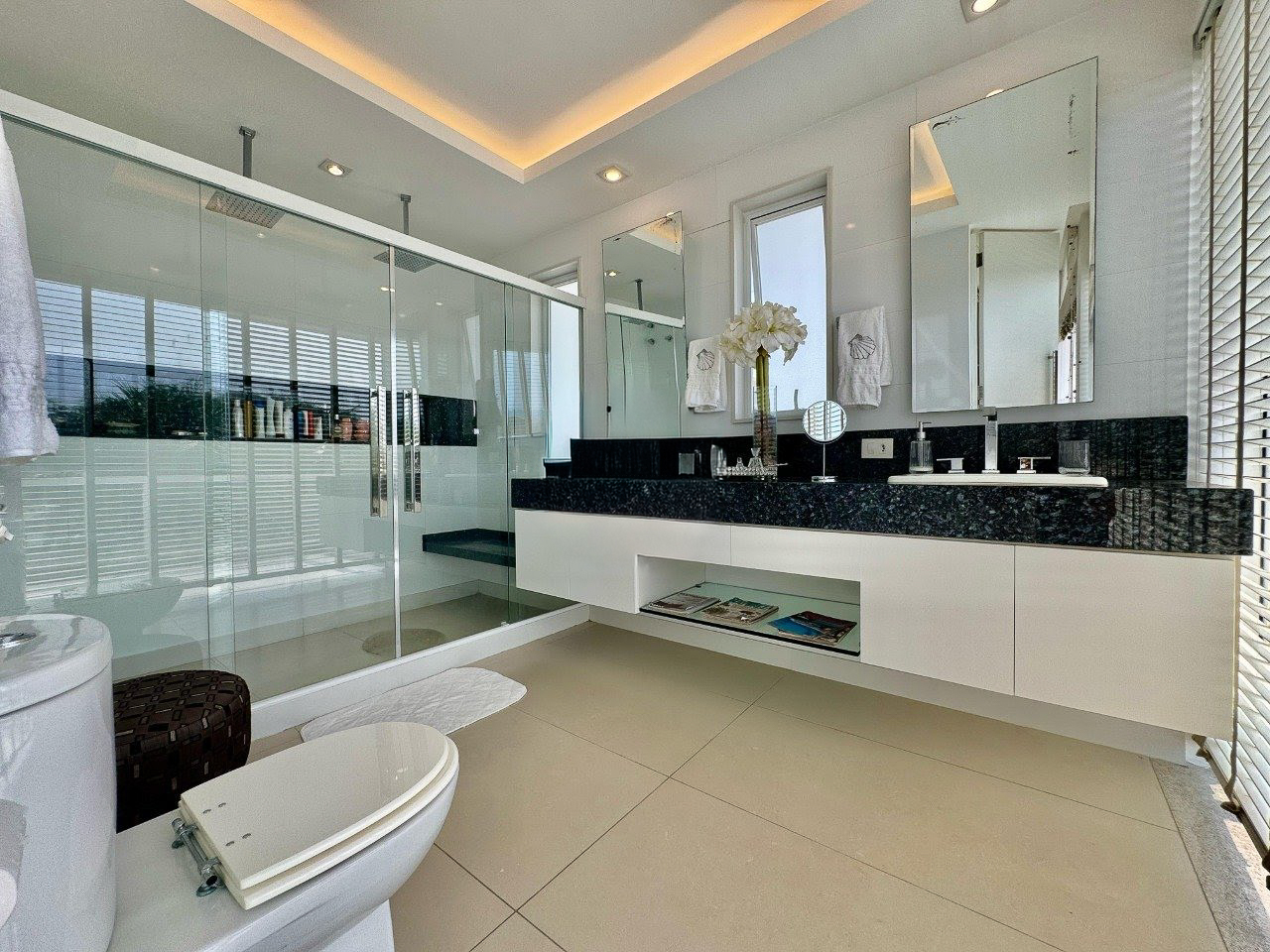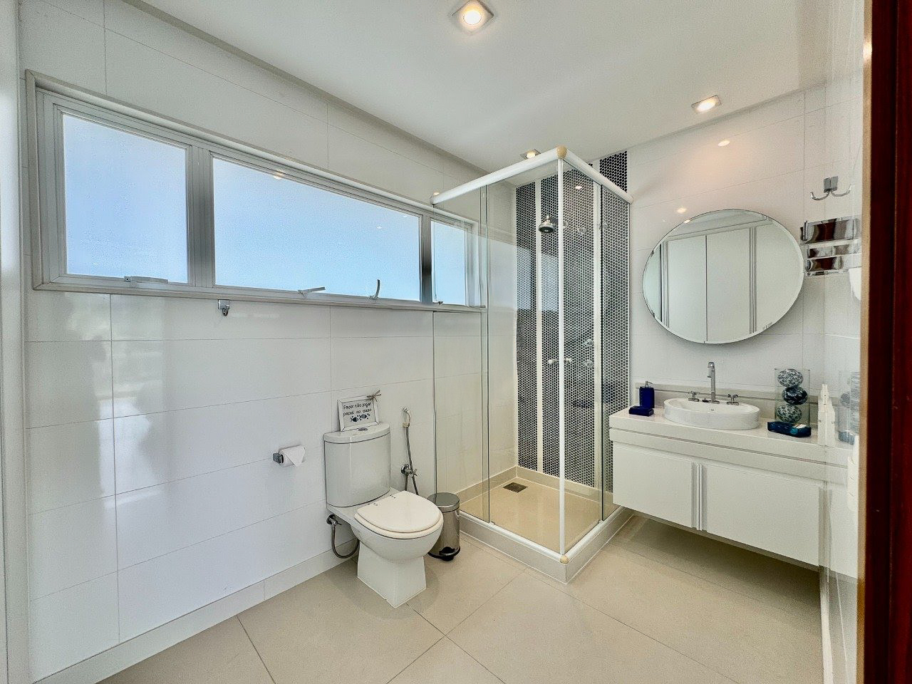 São 8 suítes (todas climatizadas com split), sendo a suíte master com 46m², closet e varanda com vista para o canal.