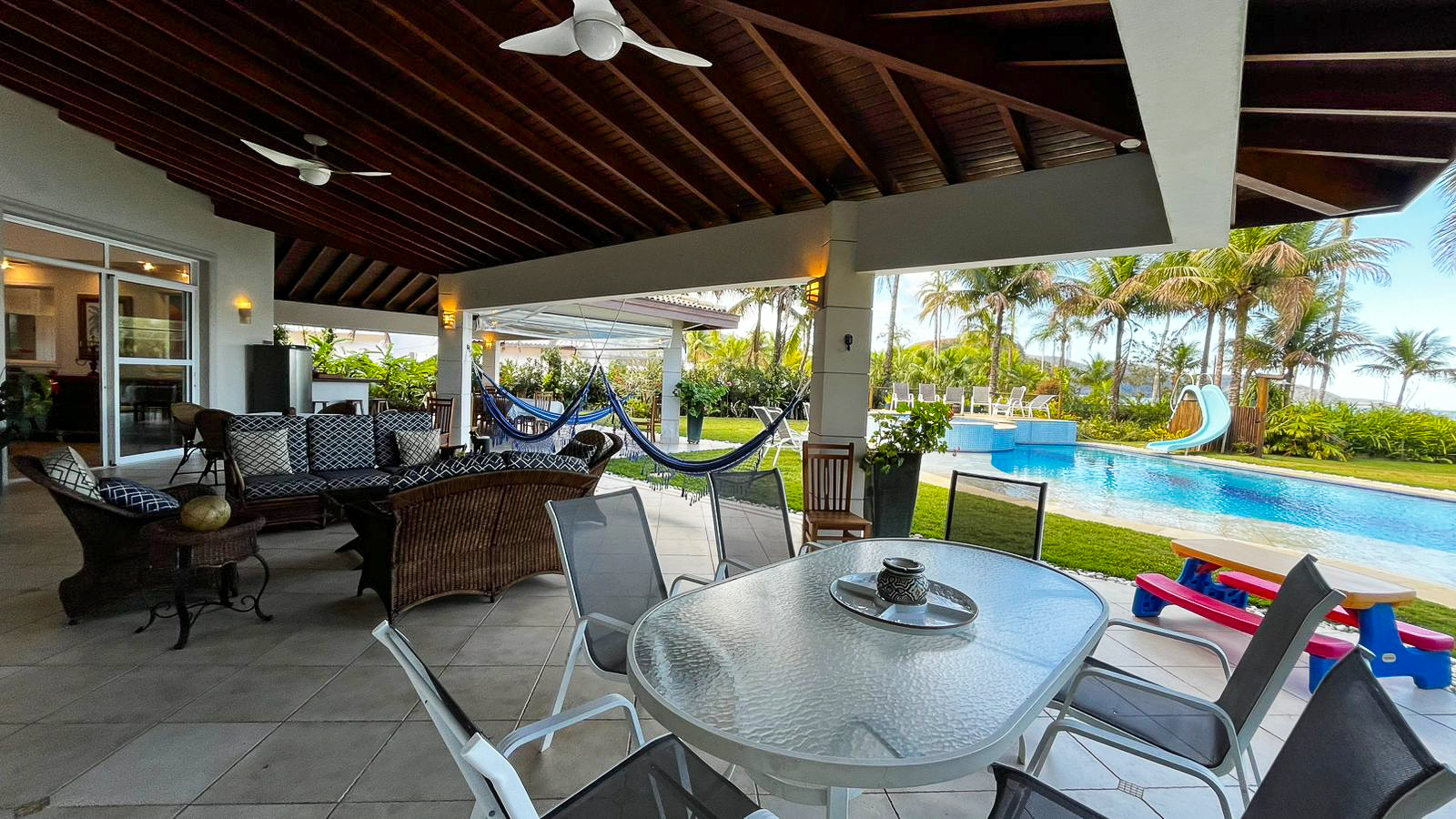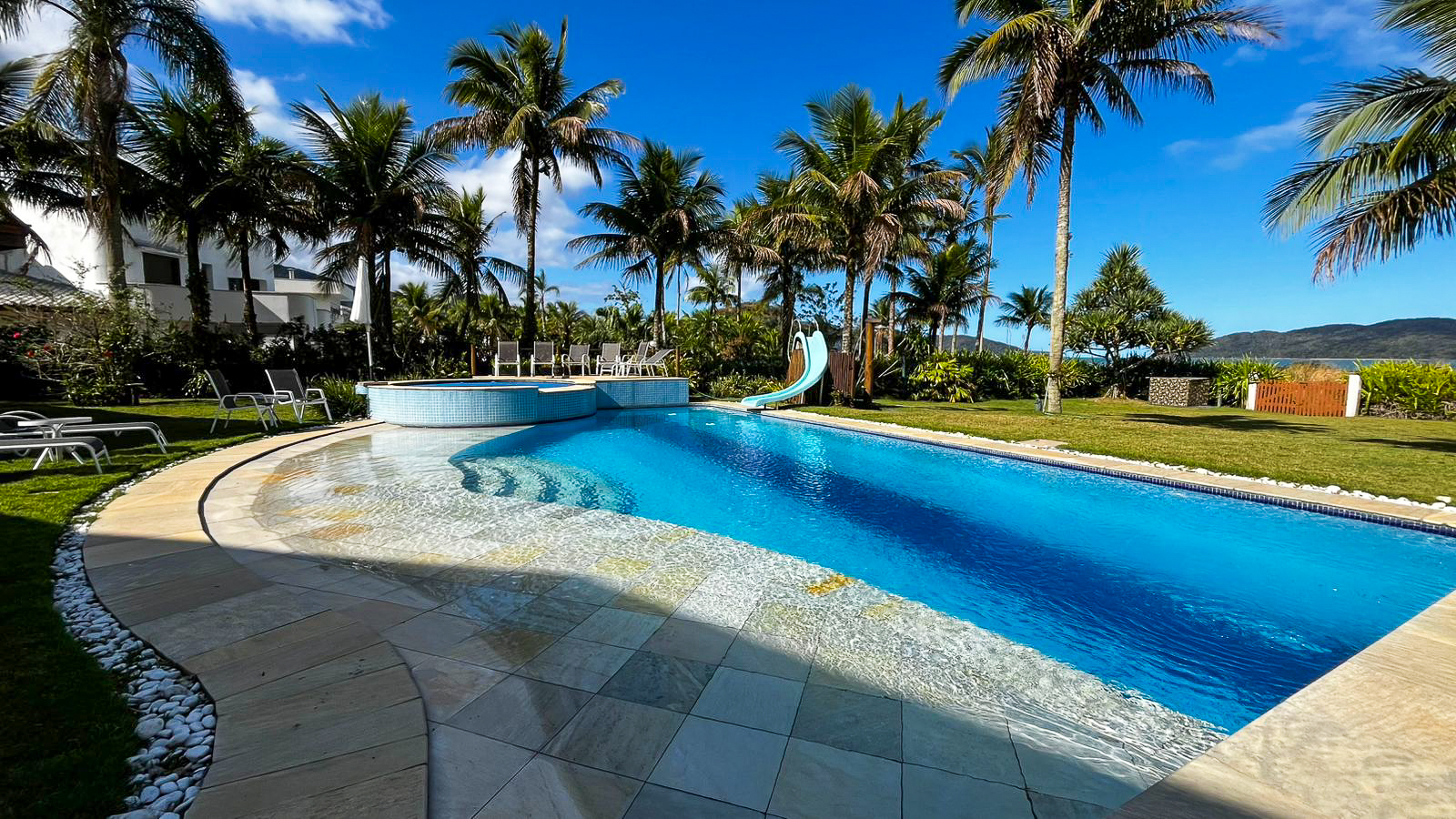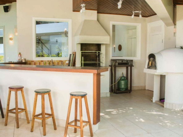 SPA aquecido, Piscina com Toboágua, Varandas e Terraço com vista para o mar, ventiladores de teto, Espaço Gourmet com Churrasqueira, Chapeira a Gás e Forno a Lenha.