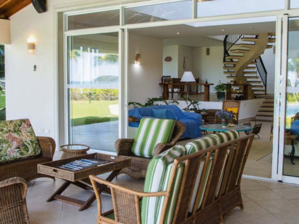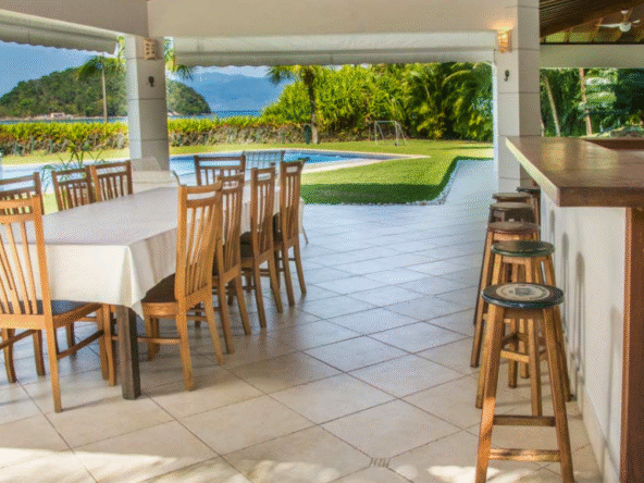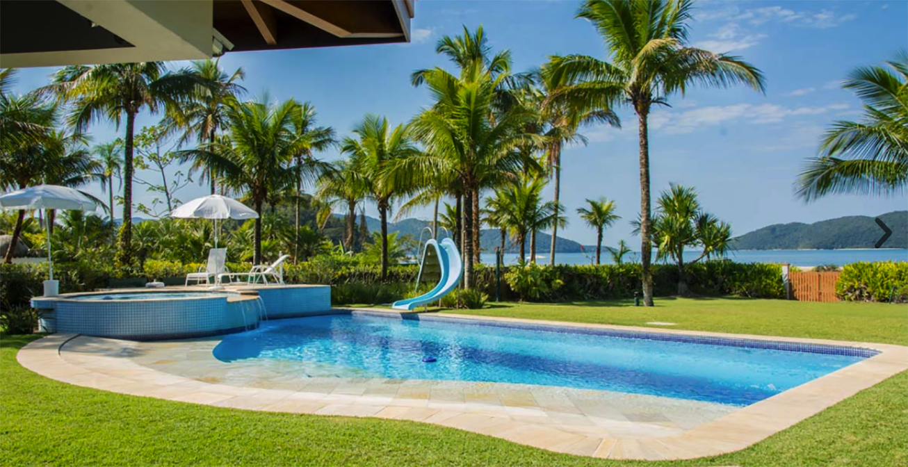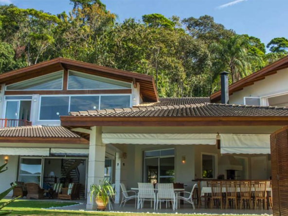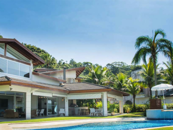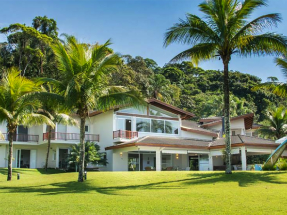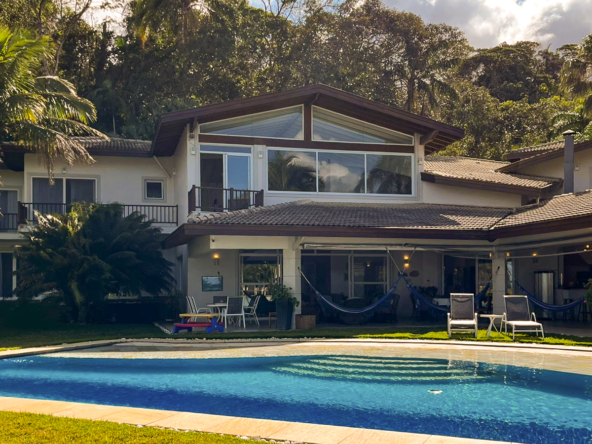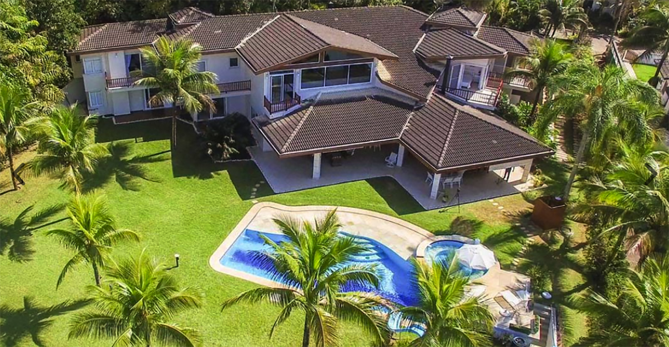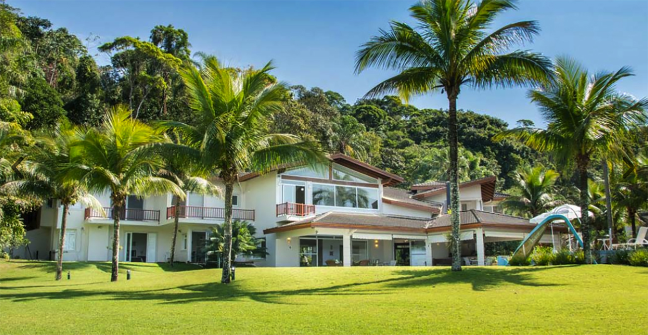 Casa de alto padrão pé na areia para locação com 950 m² em um terreno de 4.500 m² frente para Mar junto à Mata Atlântica e dentro de um tranquilo Condomínio Fechado com Segurança Patrimonial e Portaria 24 horas.