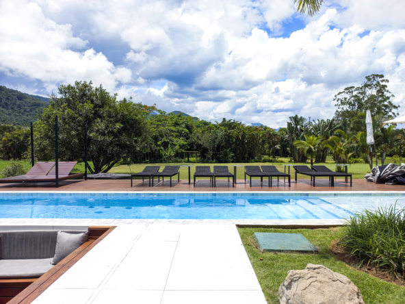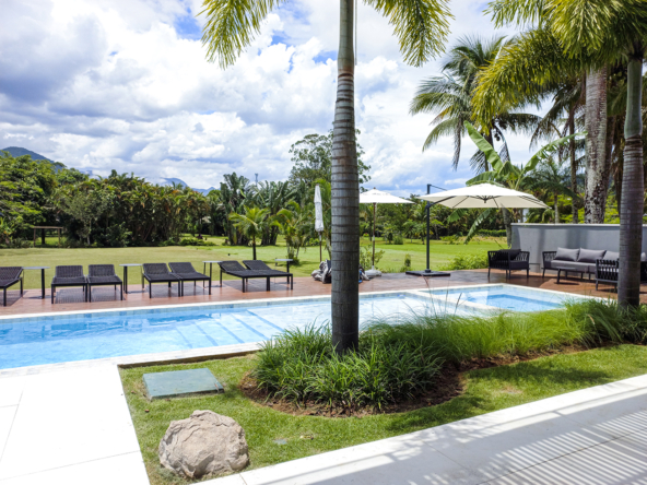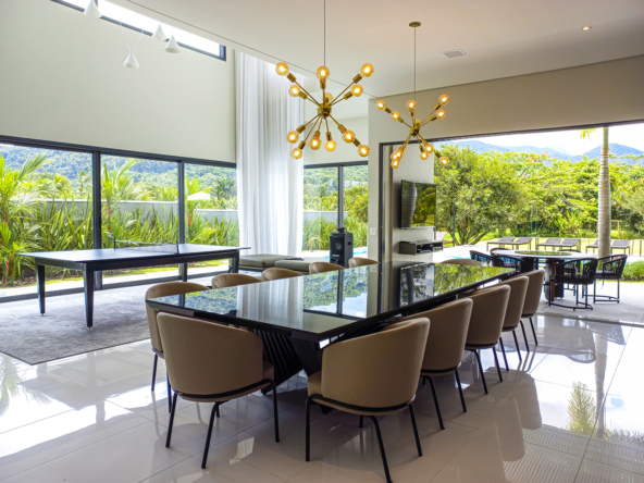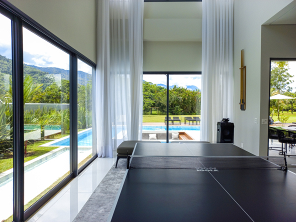 Excelente casa disponível para locação de temporada no Condomínio Costa Verde Tabatinga. A casa possui 7 amplas suítes sendo 1 master acomodadando até 14 pessoas. Ambientes integrados e climatizados a casa oferece home cinema, sala de tv, estar e área gourmet integrada com a piscina e uma bela vista para o verde.