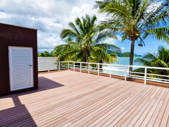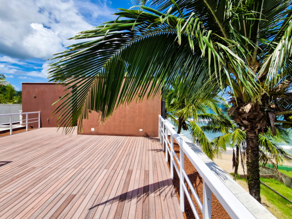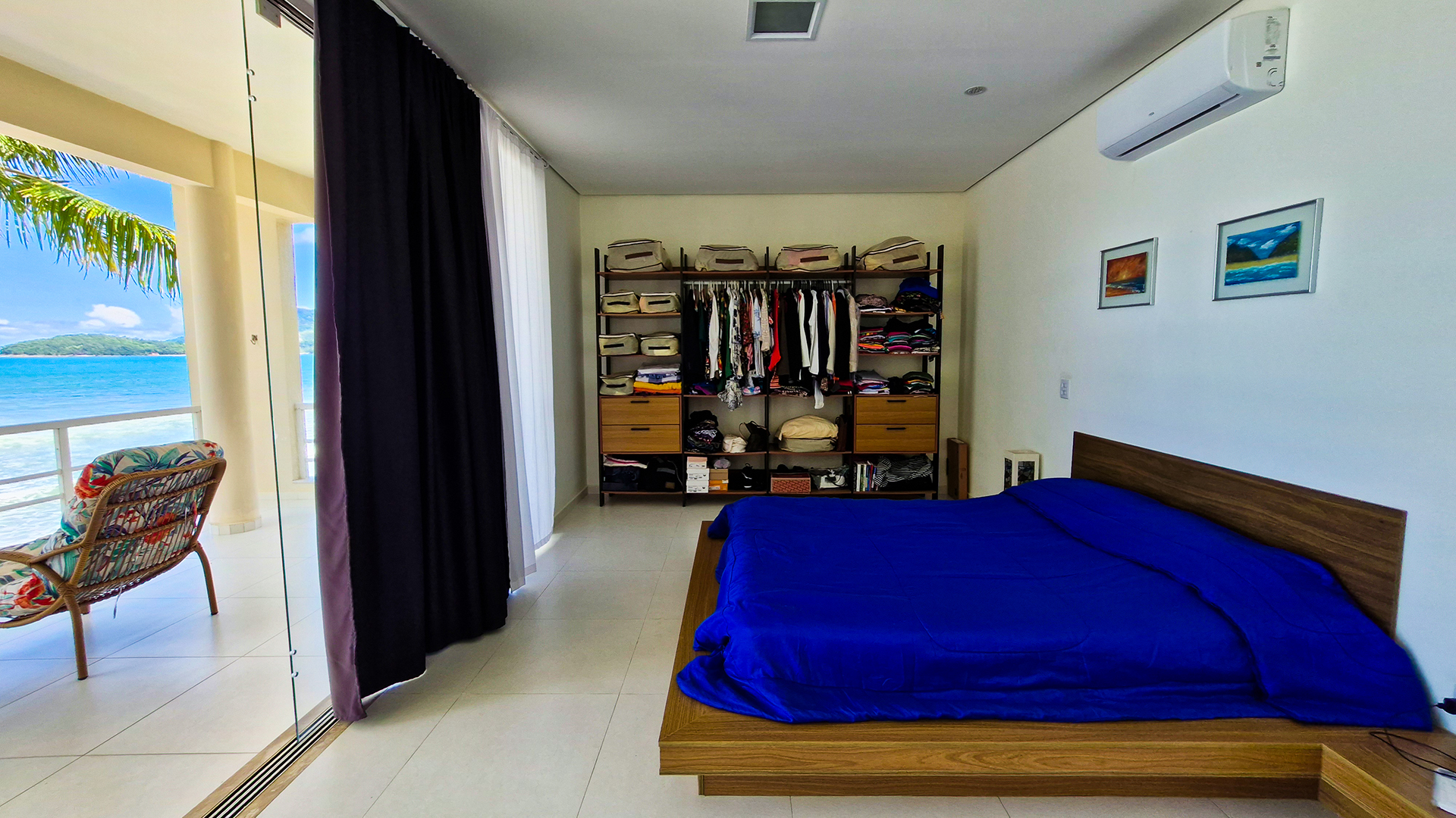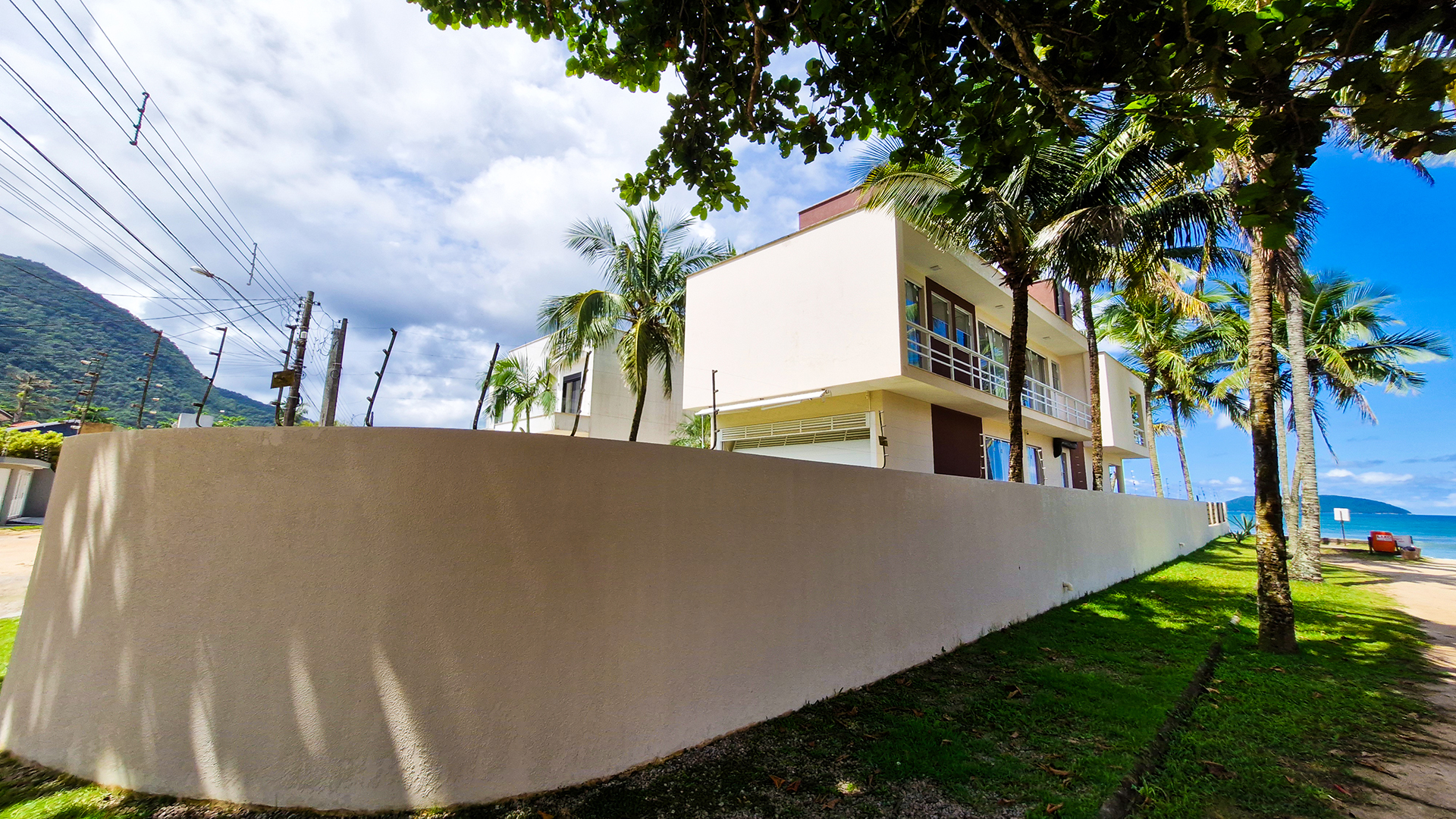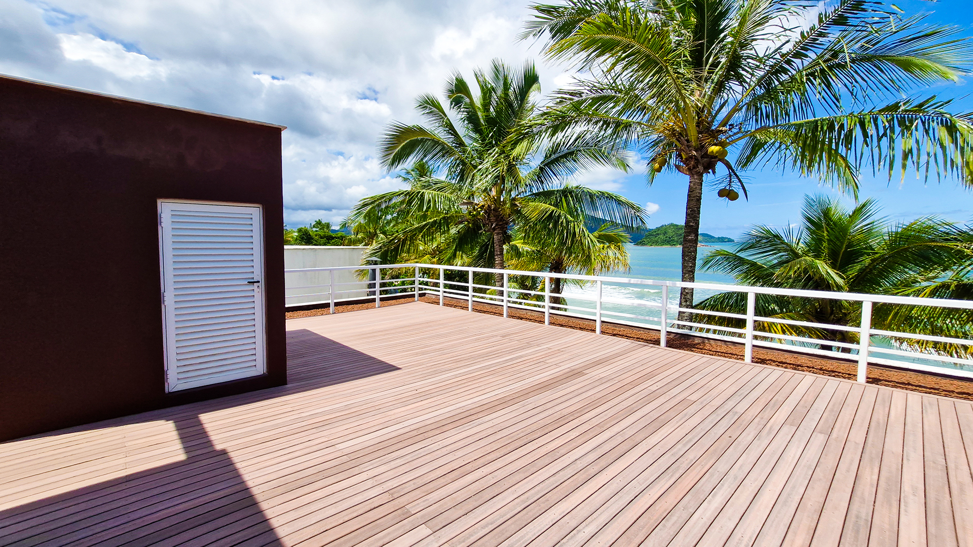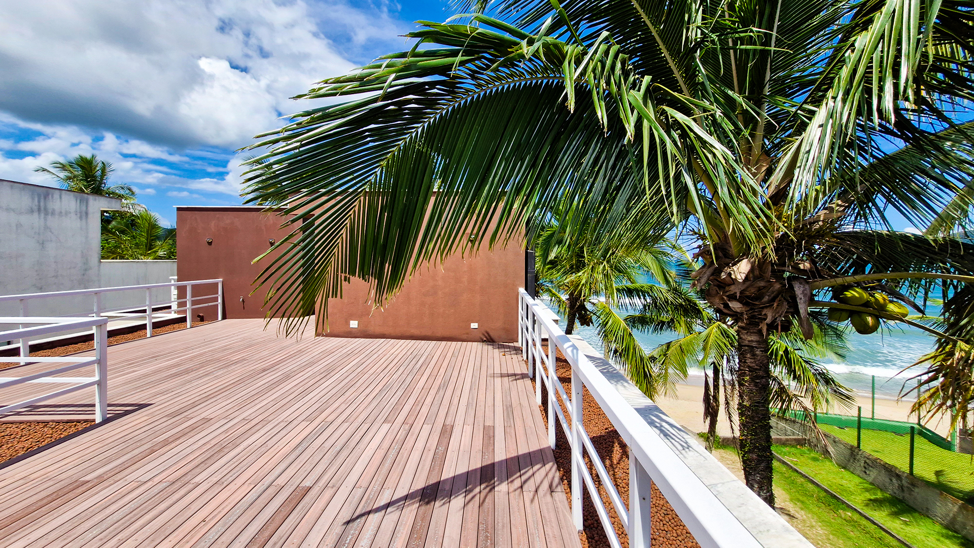 Mansão frente mar na Praia do Sapê com 3 pisos, projeto arquitetônico imponente e acabamento de alto padrão. 4 suítes todas com vista mar, rooftop em deck com vista panorâmica para o mar e a serra, energia solar, cerca elétrica e monitoramento 24h. Área de lazer completa com piscina e varanda gourmet integrada.
