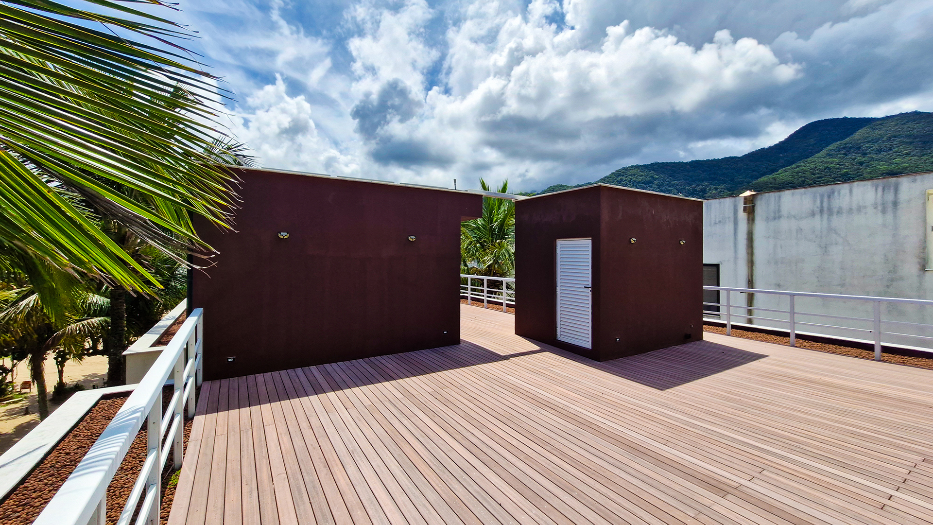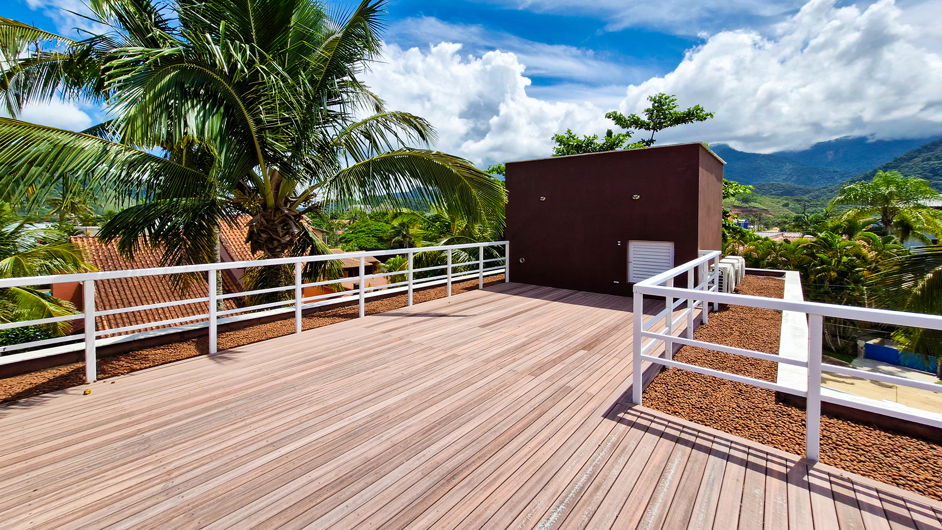 Rooftop Panorâmico (3º Piso) O grande diferencial da casa! Terraço inteiro em deck de madeira com vista deslumbrante 360°: