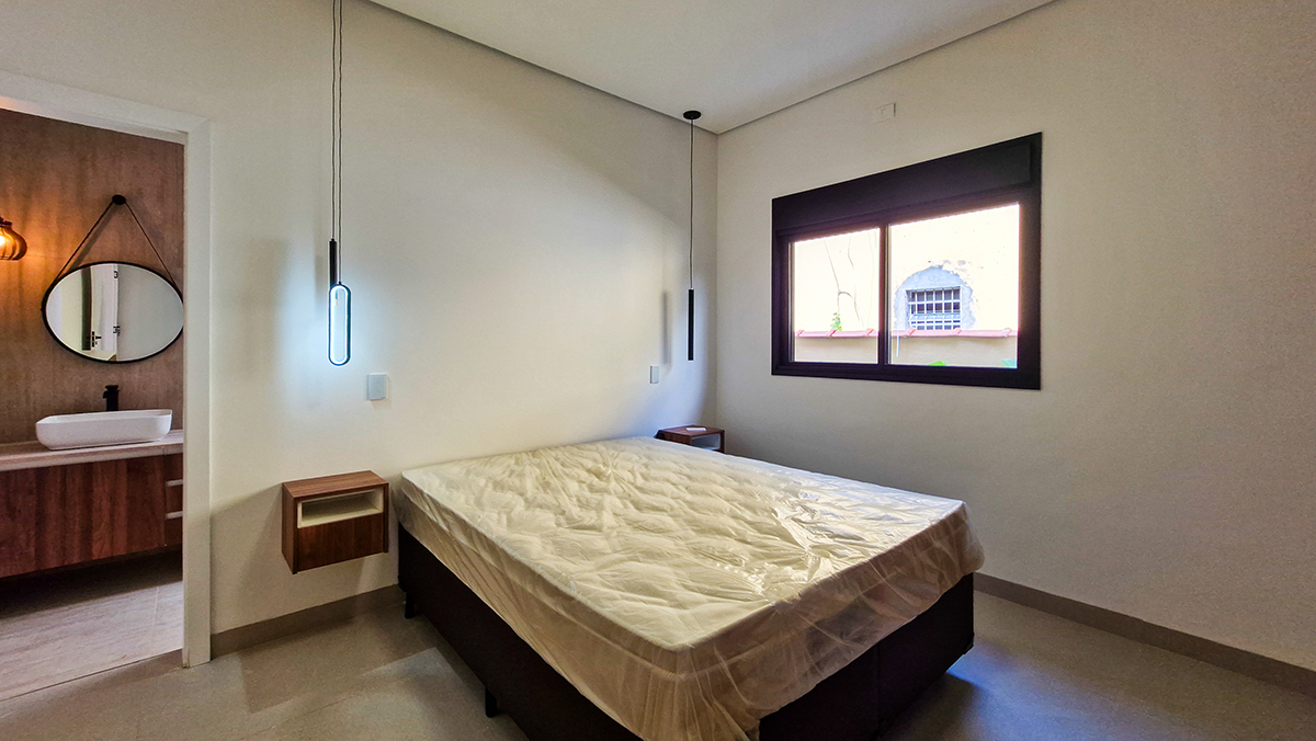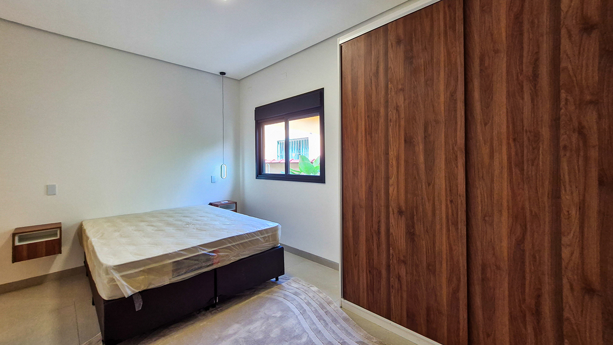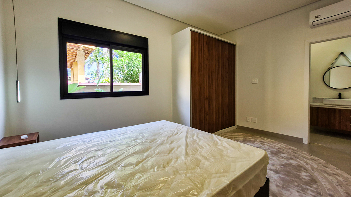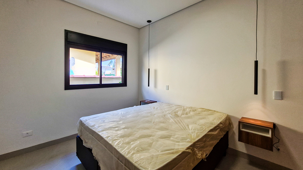 A casa conta ainda com 4 aparelhos de ar-condicionado instalados, esquadrias linha gold, persianas automatizadas e garagem coberta.