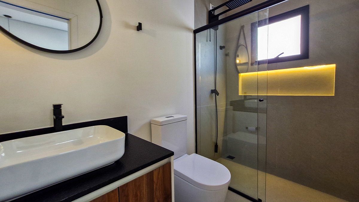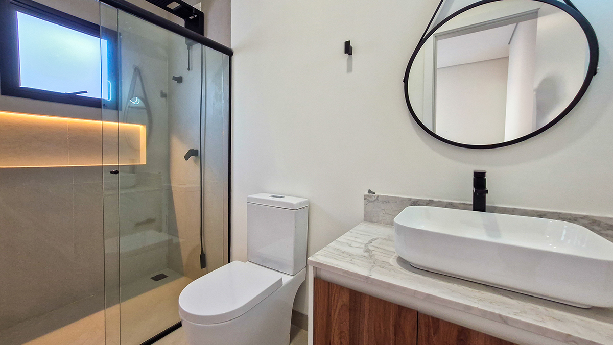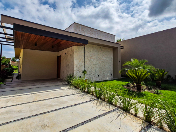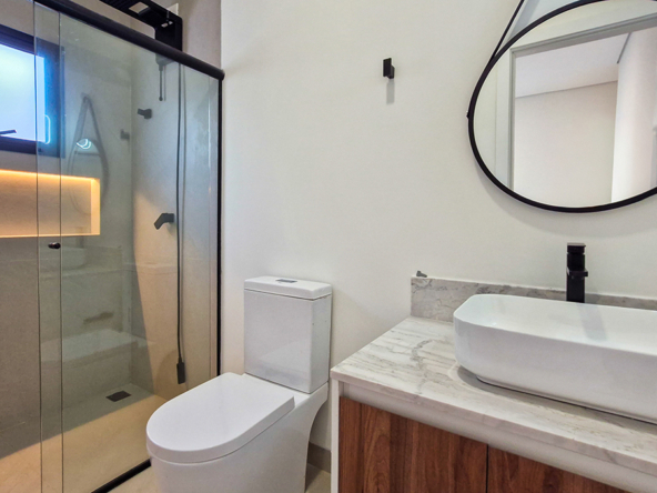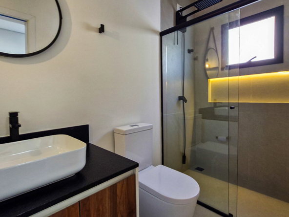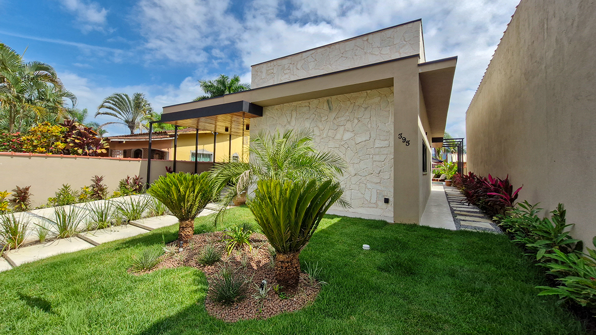 A casa conta ainda com 4 aparelhos de ar-condicionado instalados, esquadrias linha gold, persianas automatizadas e garagem coberta.