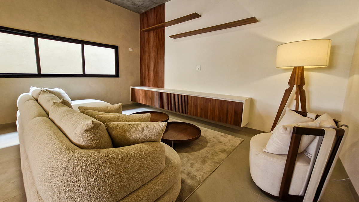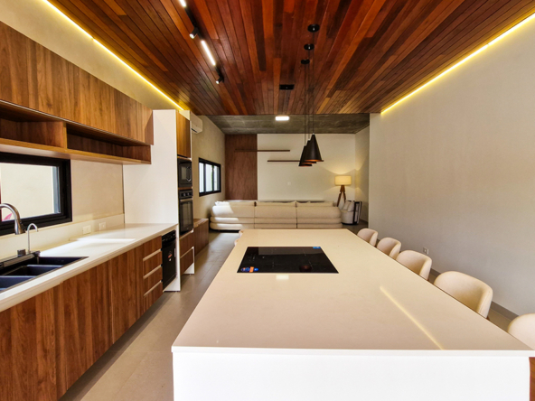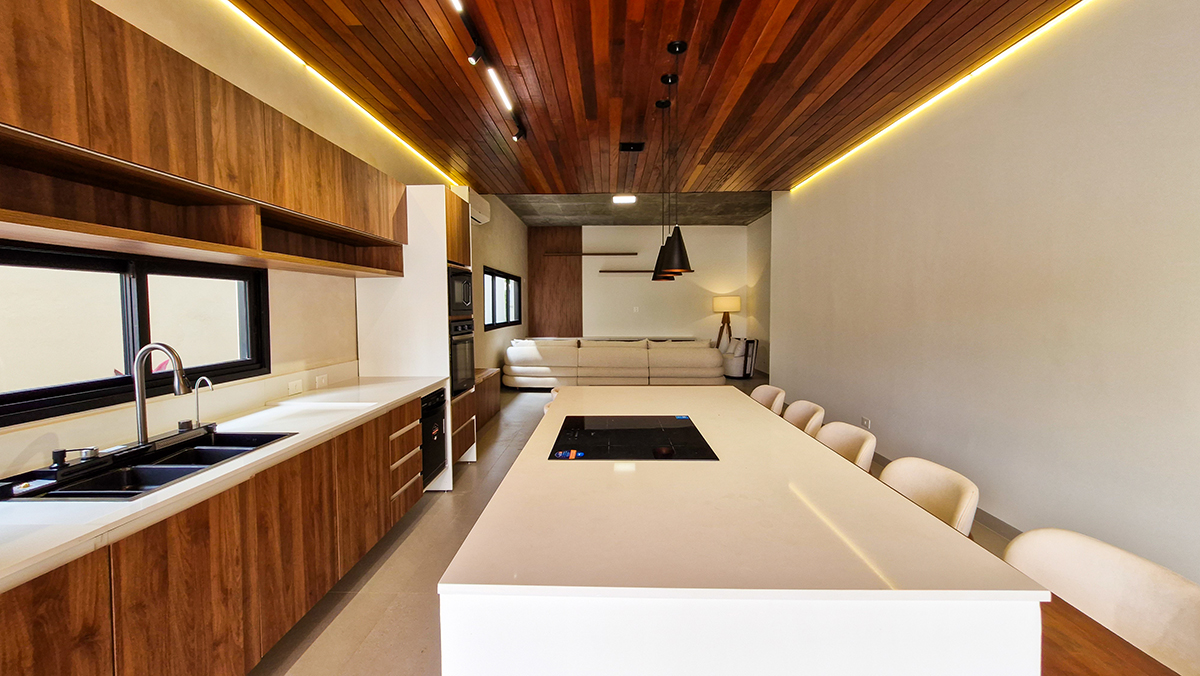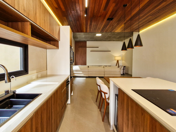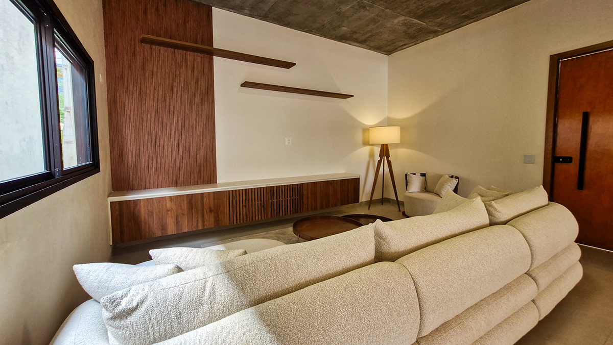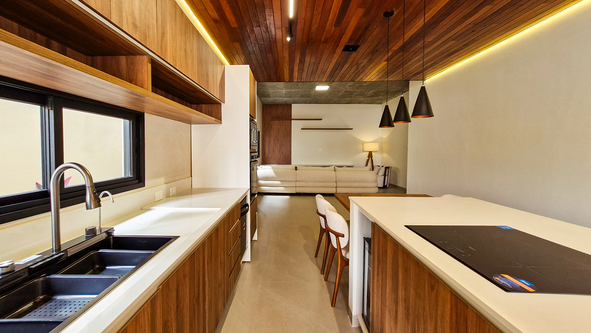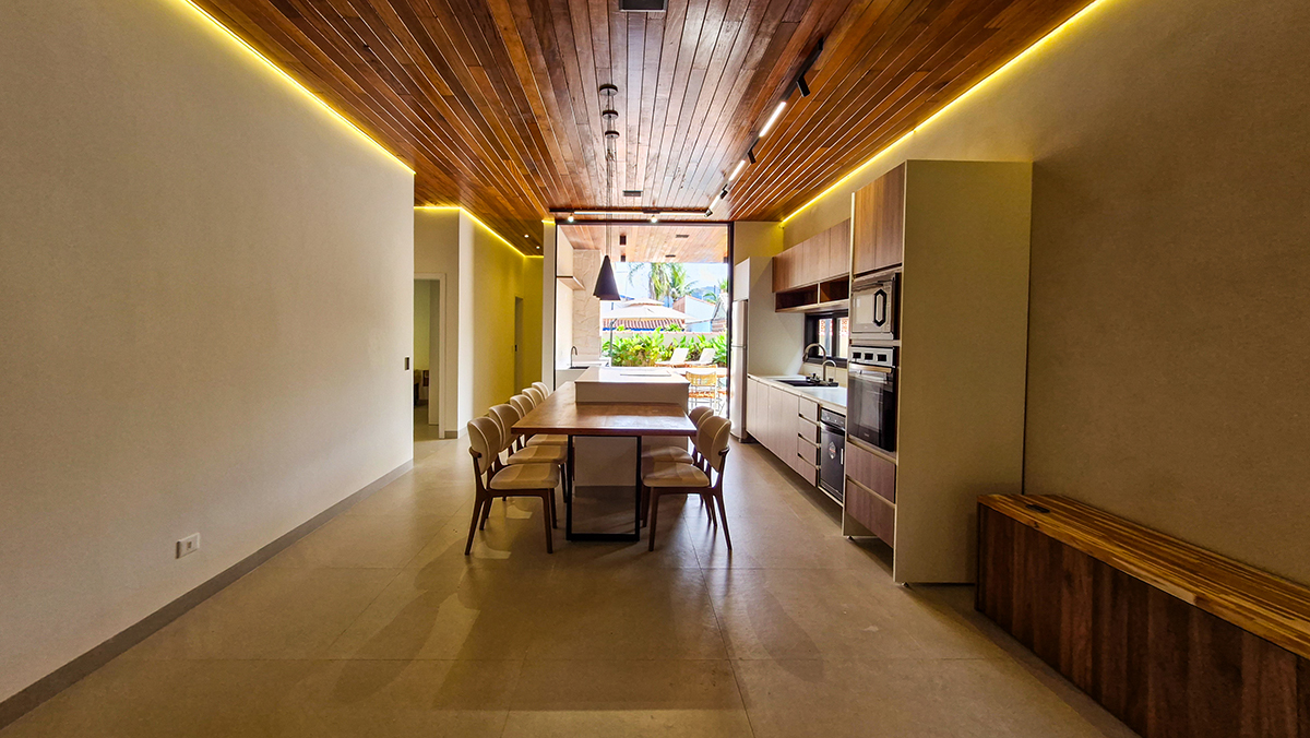 São 198m² de área construída em um terreno de 400m², com um projeto totalmente integrado que valoriza amplitude, iluminação natural e fluidez entre os ambientes. Sala, cozinha e espaço gourmet se conectam de forma harmoniosa, criando um living único, moderno e funcional.