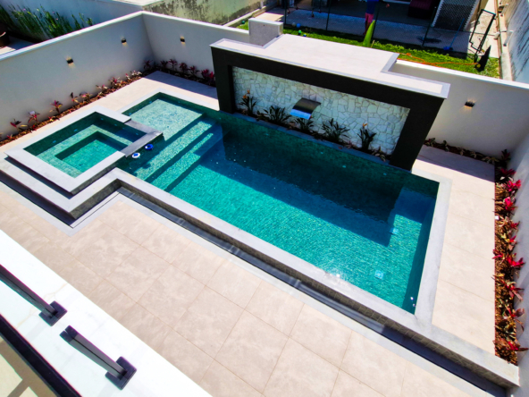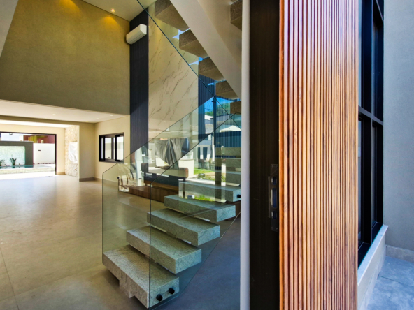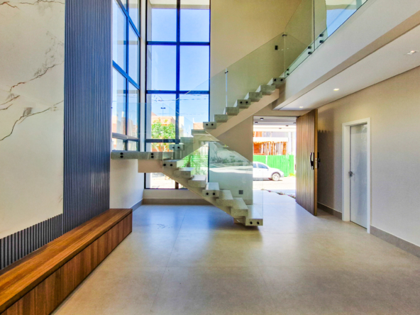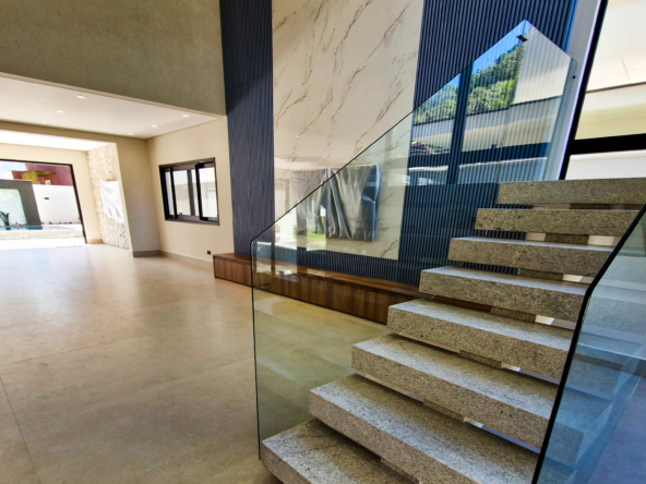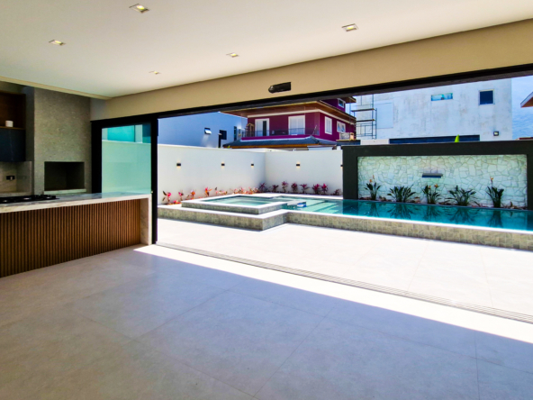 Totalmente automatizada, a casa conta com persianas elétricas, sistema fotovoltaico, piscina e jacuzzi aquecidas, e integração perfeita entre os ambientes internos e a área de lazer. O projeto, sofisticado e funcional, oferece uma atmosfera de refúgio moderno, com amplitude, iluminação natural e o toque do conforto inteligente.