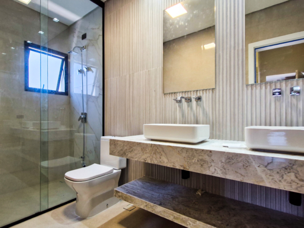 Com 346 m² de área construída em terreno de 360 m², o imóvel foi projetado para encantar. São 5 suítes espaçosas, acabamento de alto padrão, marcenaria planejada e eletrodomésticos premium já inclusos — uma residência pronta para morar, onde cada detalhe reflete exclusividade.