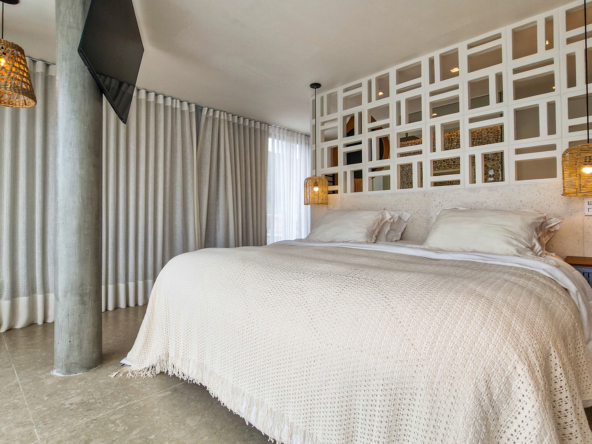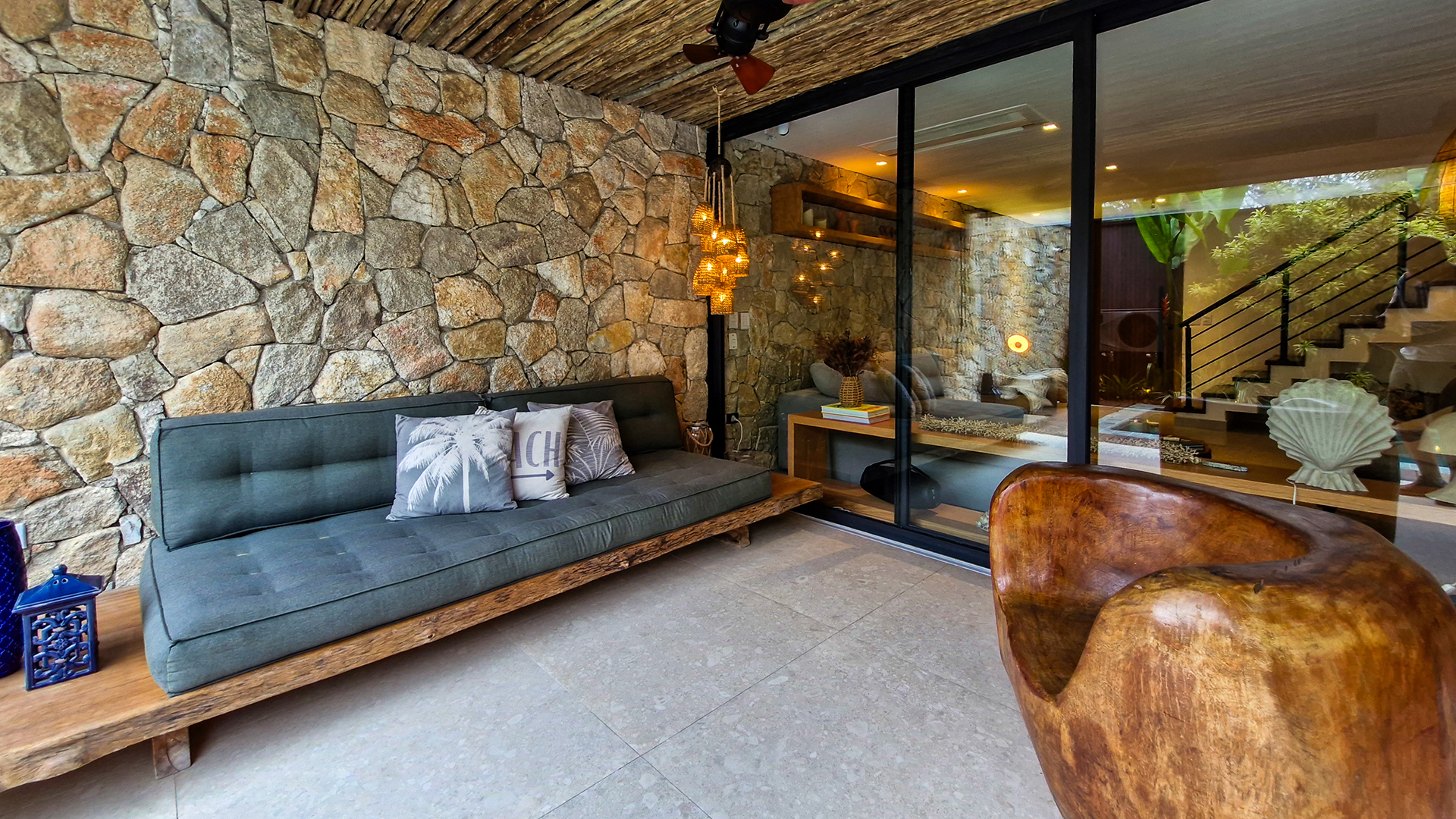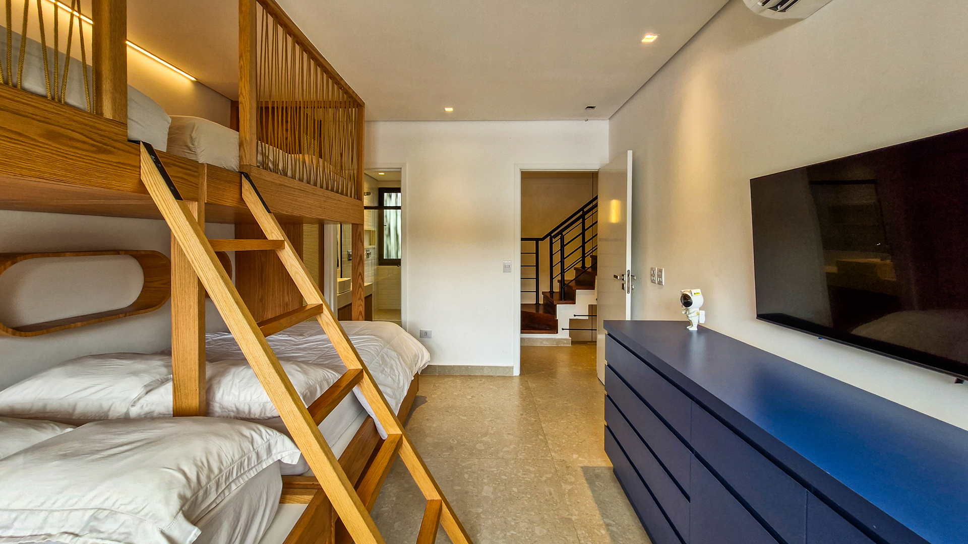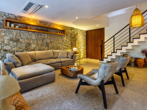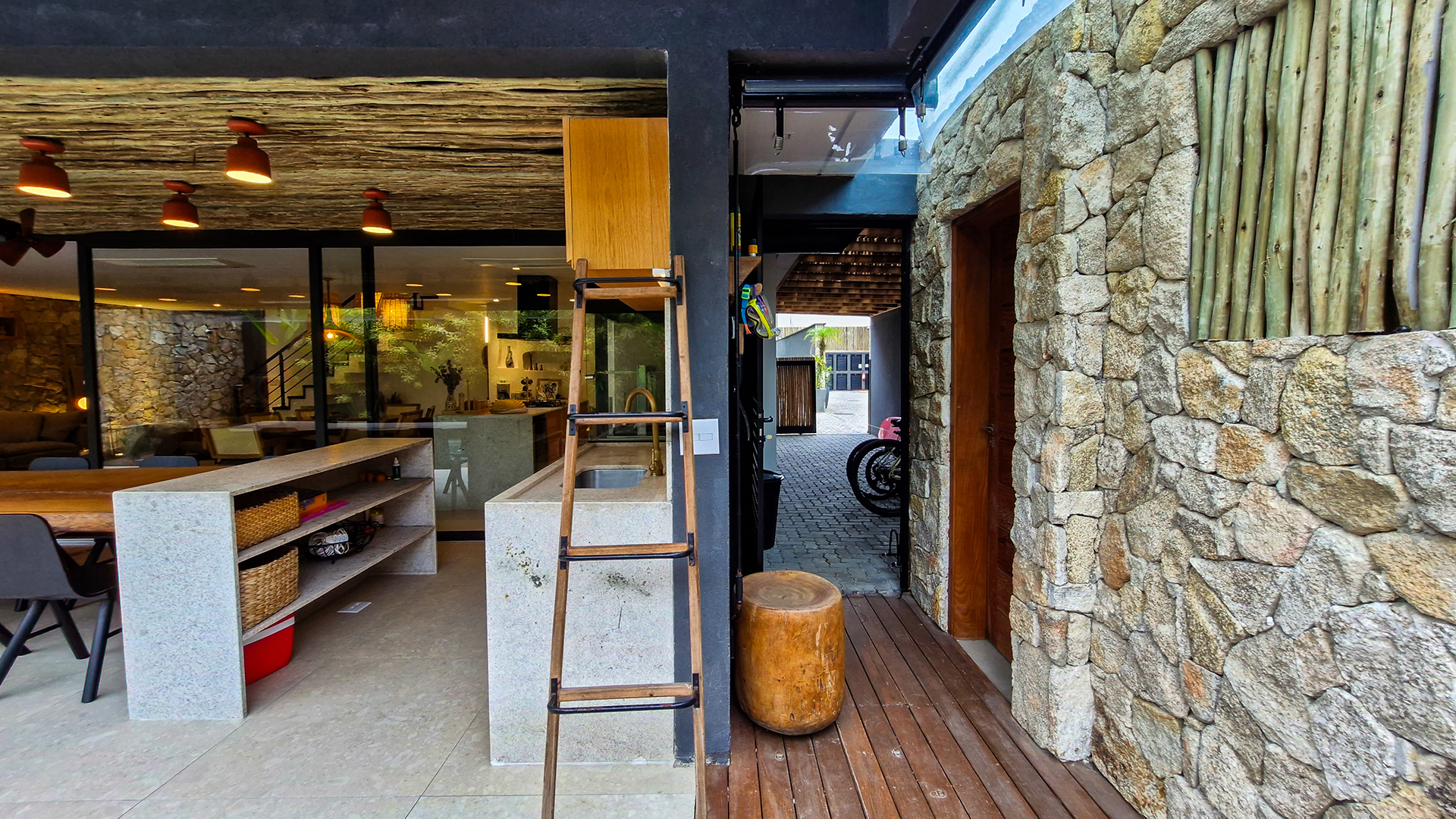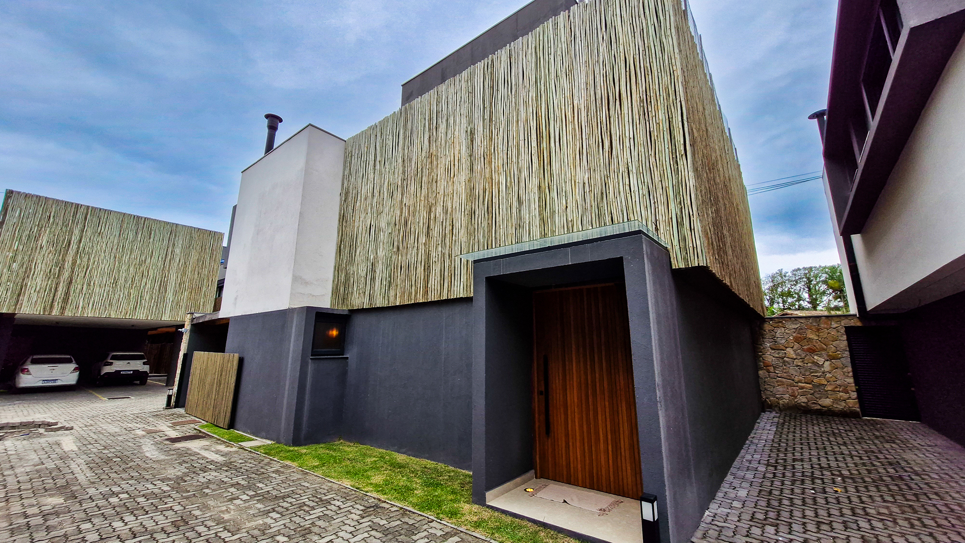 Logo na entrada, a arquitetura contemporânea com elementos naturais já antecipa o padrão elevado. Internamente, o projeto valoriza o conceito aberto: sala de estar, jantar e cozinha formam um ambiente amplo e integrado, complementado por lavabo interno e uma fluidez perfeita para o dia a dia e para receber.