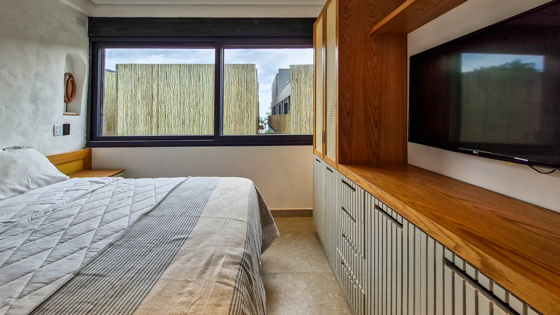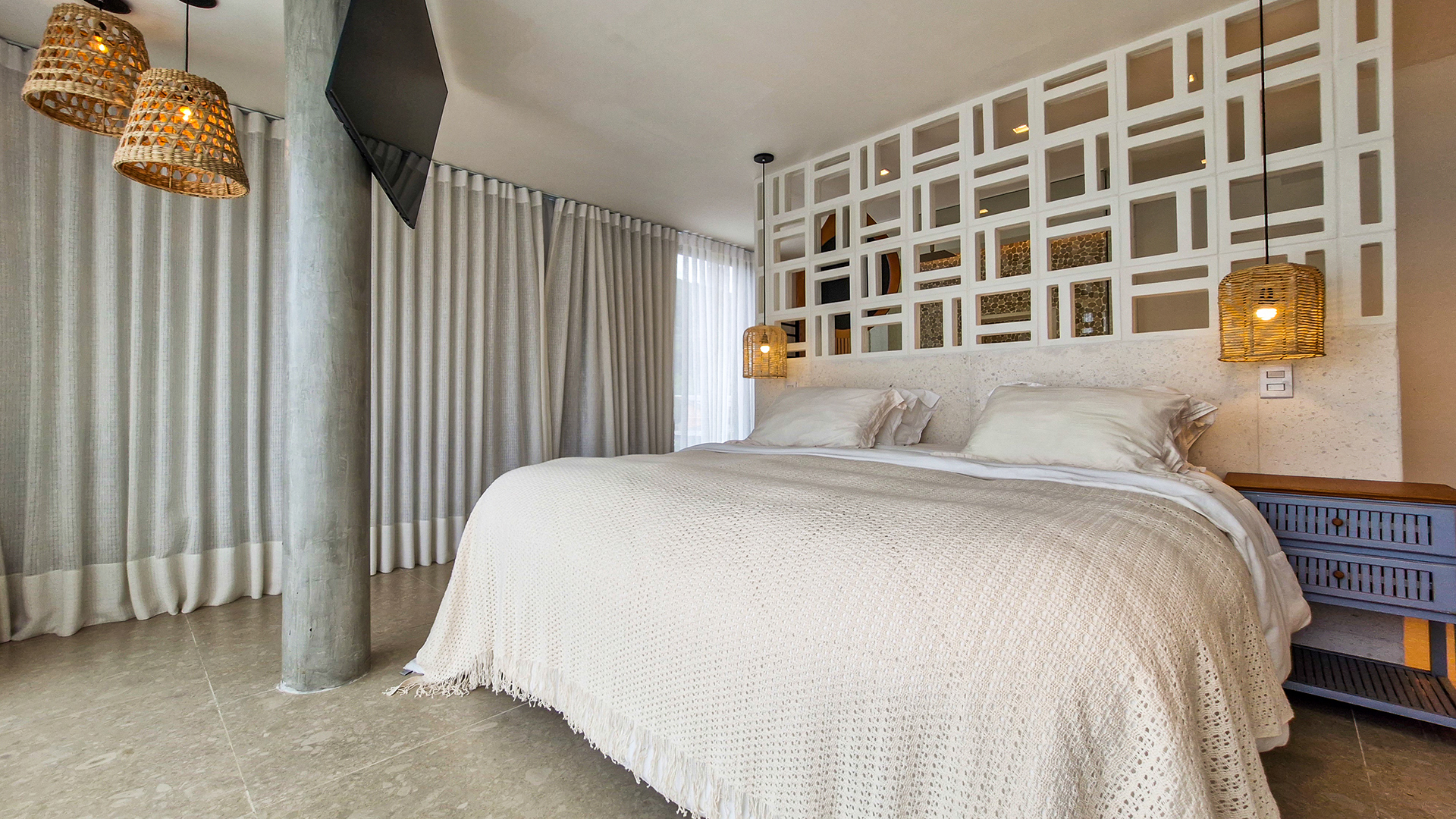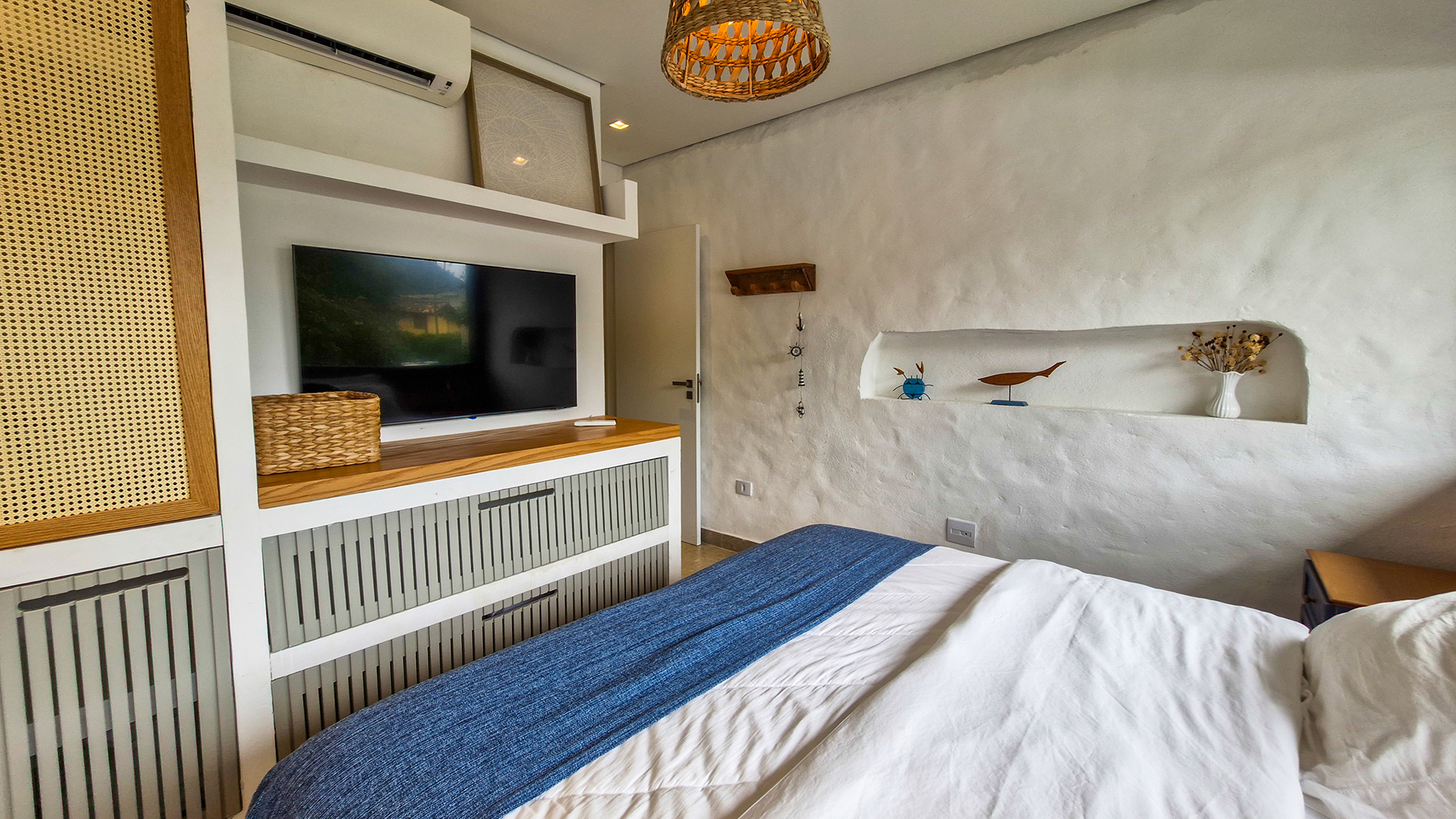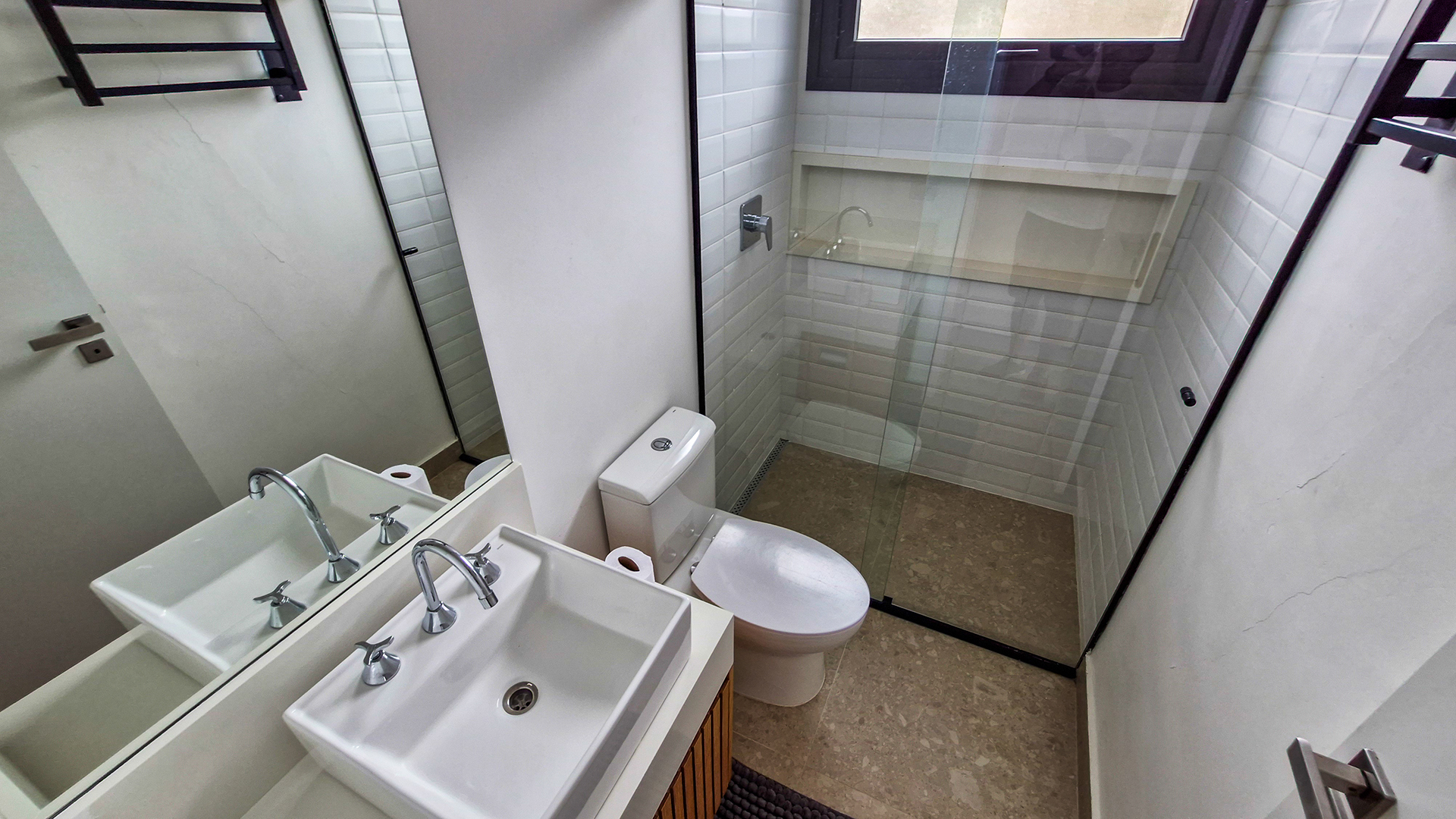 Logo na entrada, a arquitetura contemporânea com elementos naturais já antecipa o padrão elevado. Internamente, o projeto valoriza o conceito aberto: sala de estar, jantar e cozinha formam um ambiente amplo e integrado, complementado por lavabo interno e uma fluidez perfeita para o dia a dia e para receber.