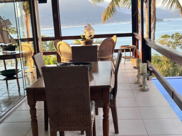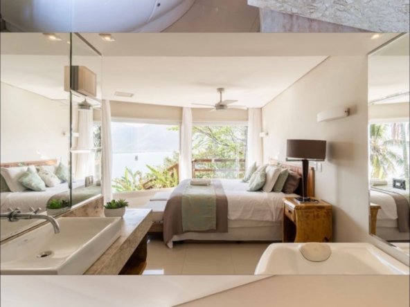 O projeto arquitetônico privilegia a integração entre ambientes internos e externos, oferecendo 5 suítes amplas — todas com vista deslumbrante para a praia e para a Ilha de Maranduba —, além de um living sofisticado, sala de estar e cozinha integrada, também voltados para o horizonte azul.