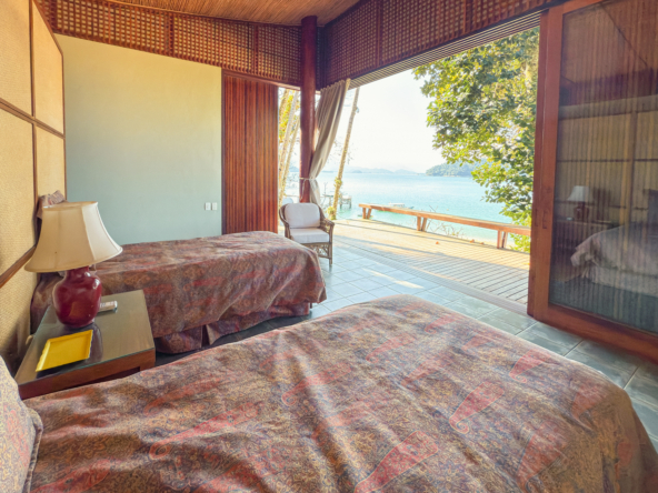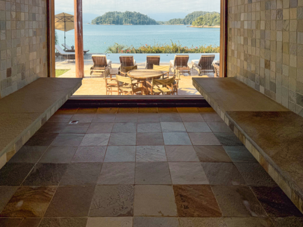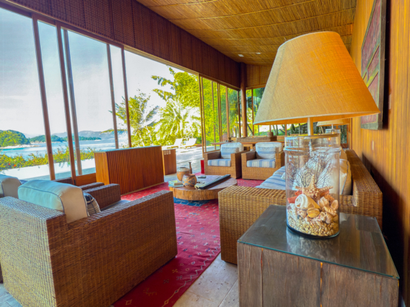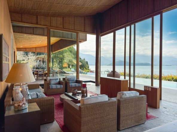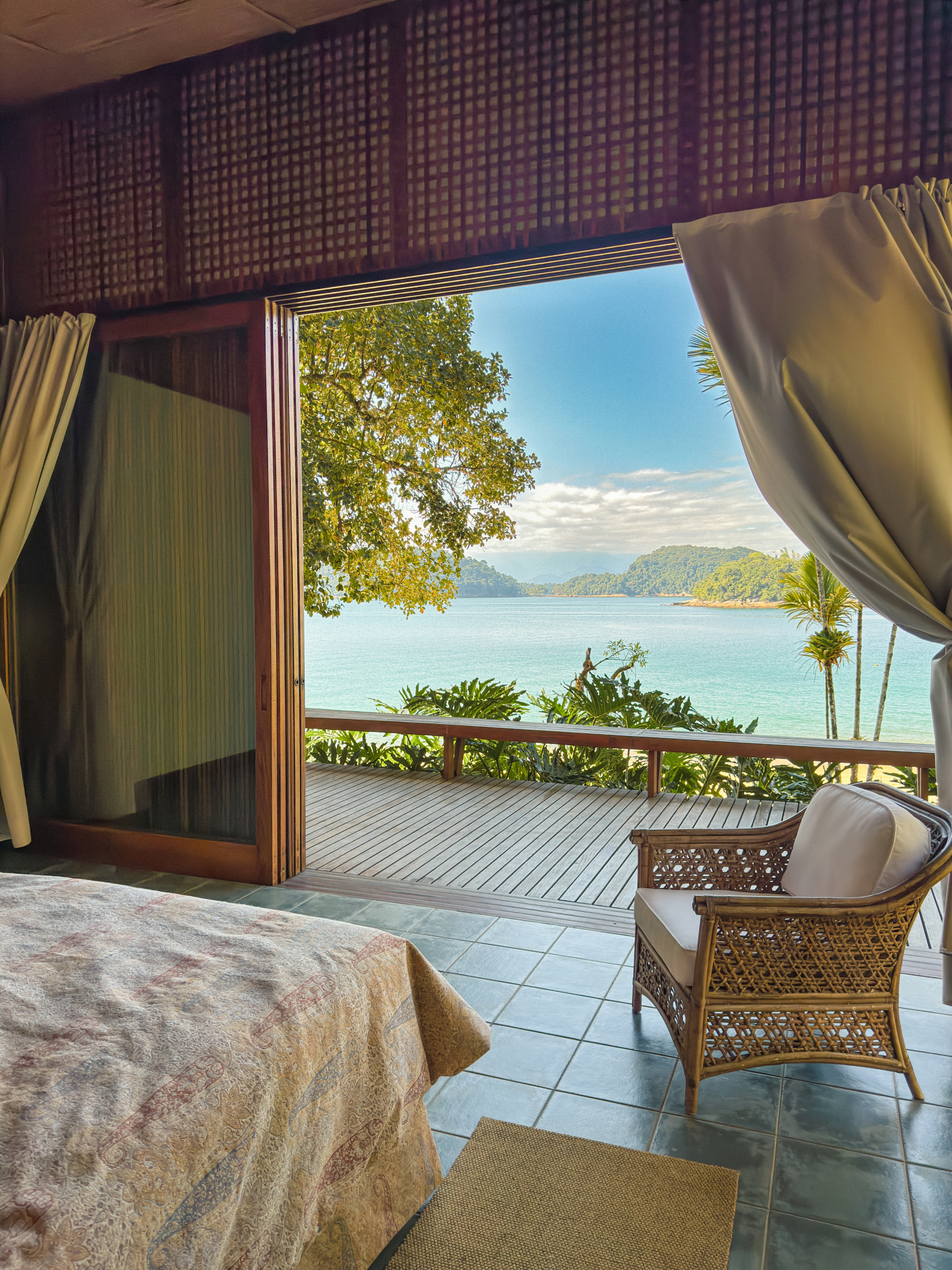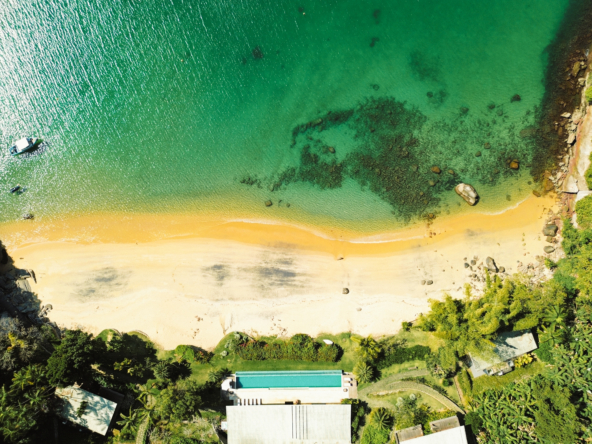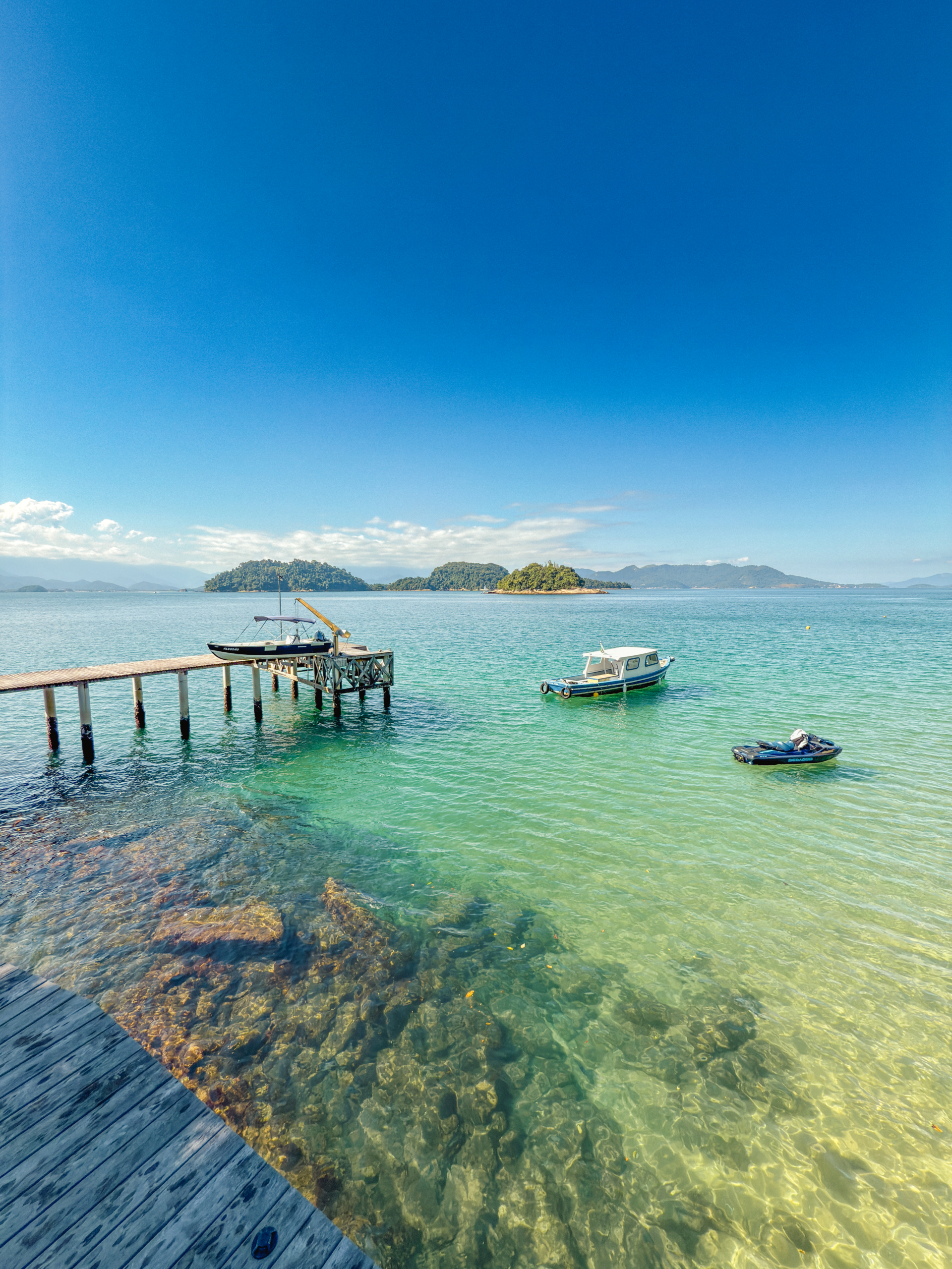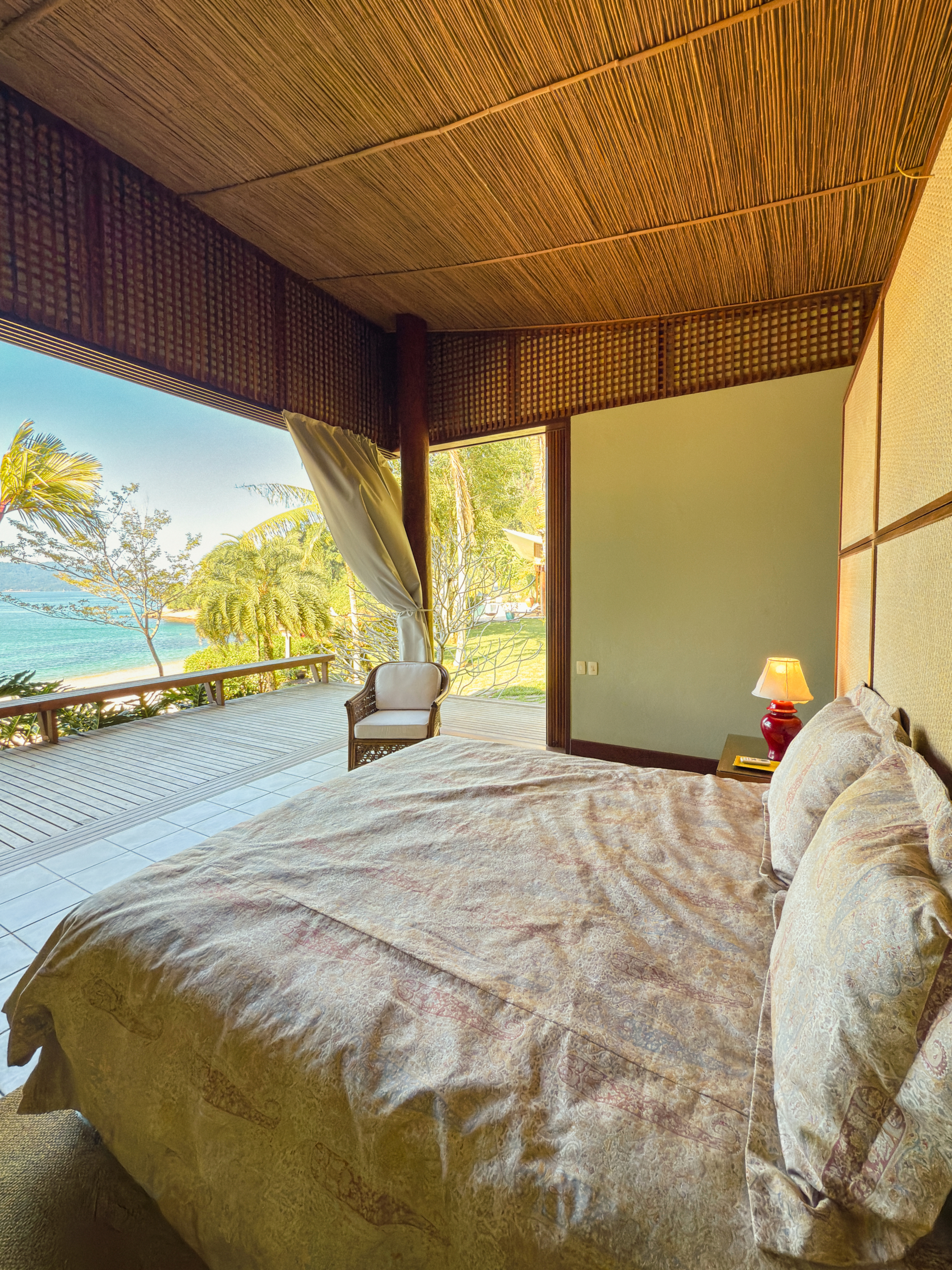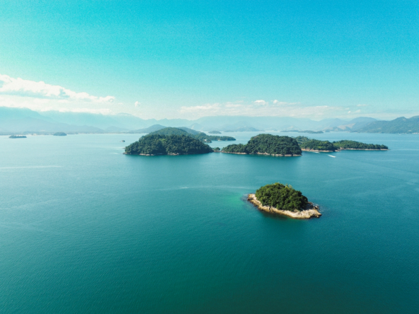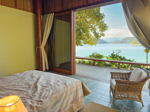 Na área externa, o cenário é paradisíaco: piscina de borda infinita com 36 metros, sauna, jacuzzi e uma praia particular com 200 metros de extensão, além de um píer privativo com capacidade para grandes embarcações. A propriedade também possui heliponto e gerador próprio, garantindo total autonomia e exclusividade.