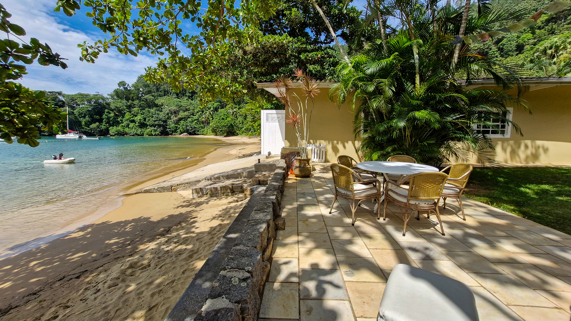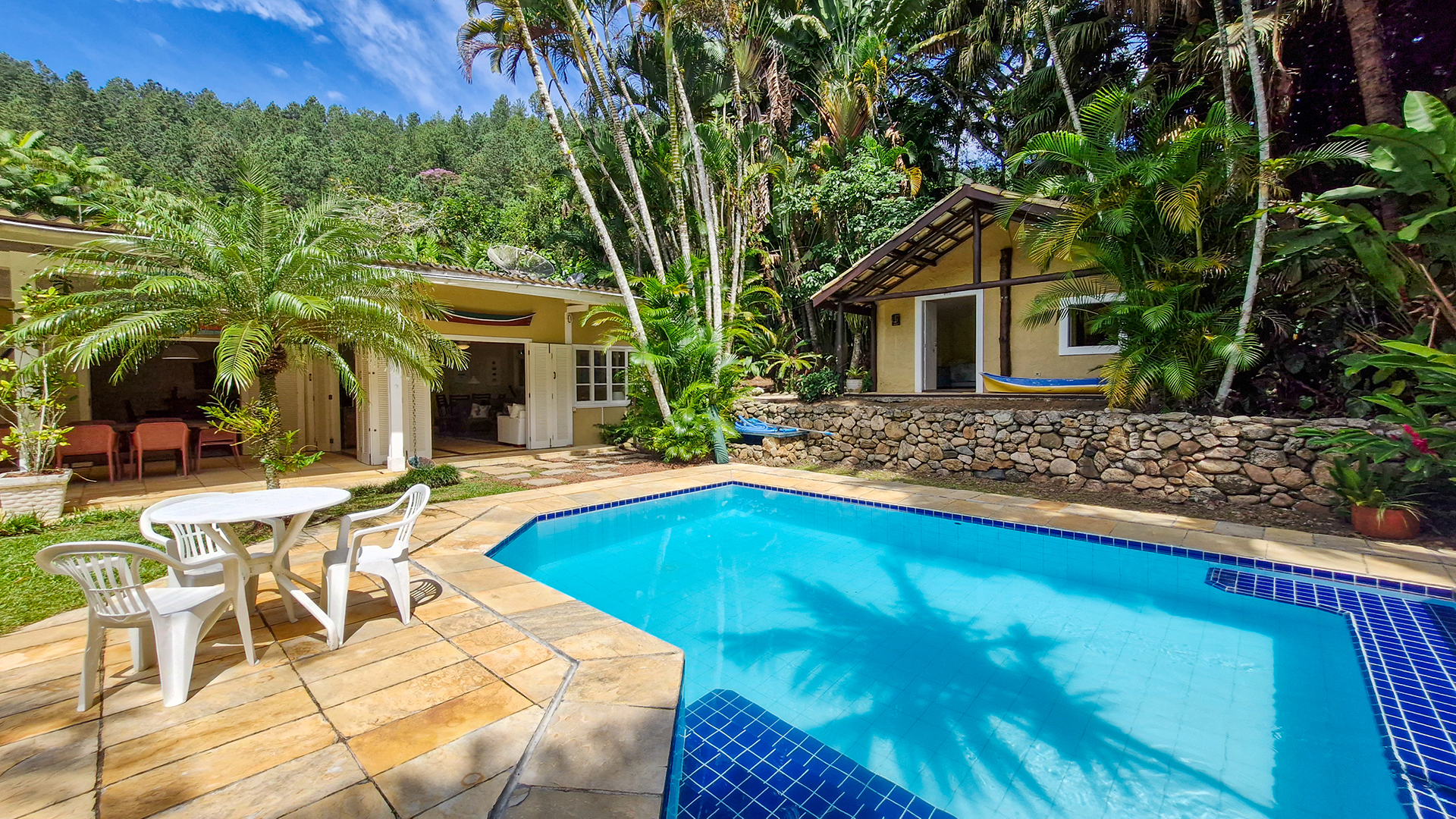 Localizada na exclusiva Praia da Ribeira, em Ubatuba, a casa está inserida em meio à mata atlântica preservada, proporcionando um ambiente reservado e silencioso — com acesso direto à praia e uma atmosfera absolutamente única.