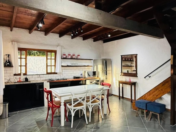 Com capacidade para acomodar confortavelmente até 30 pessoas — e locação mínima para 20 —, esta propriedade é o cenário perfeito para famílias e grupos de amigos que buscam momentos de lazer e conexão em meio à natureza. São 8 quartos, sendo 6 suítes, e 8 banheiros, distribuídos em uma arquitetura rústica-chique que homenageia o autêntico estilo caiçara, com materiais naturais, espaços amplos e integração total aos ambientes externos.